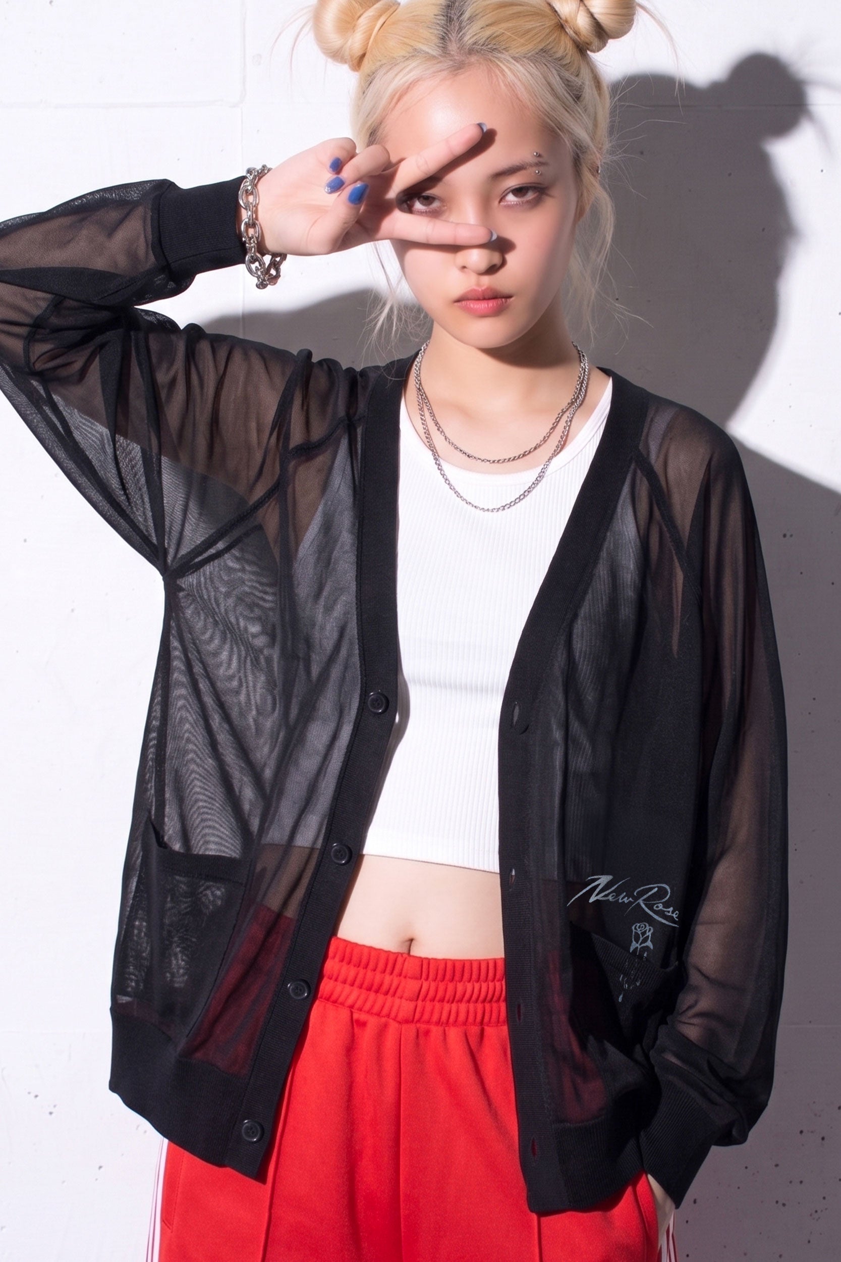 NewRose / Sheer Knit Cardigan Airbrush - BLACK