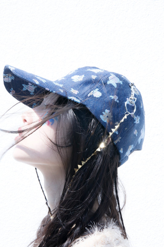 BODYSONG. / 先行予約 FLORAL DENIM CAP - NAVY