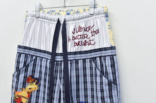 NewRose / Pajama Pants Embroidery Print - BLUE CHECK
