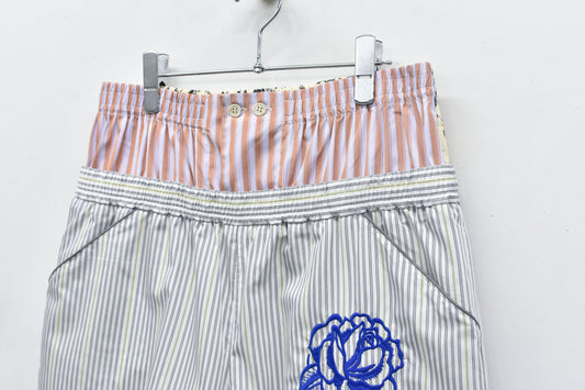 NewRose / Pajama Shorts Embroidery - GRAY STRIPE