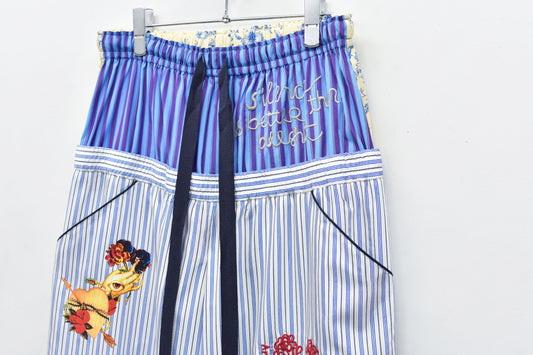 NewRose / Pajama Pants Embroidery Print - BLUE STRIPE