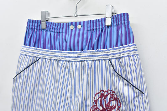 NewRose / Pajama Shorts Embroidery - BLUE STRIPE