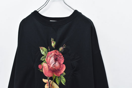 NewRose / Embroidery Wrinklework Sweatshirt - BLACK