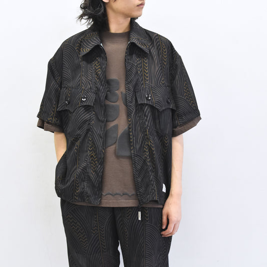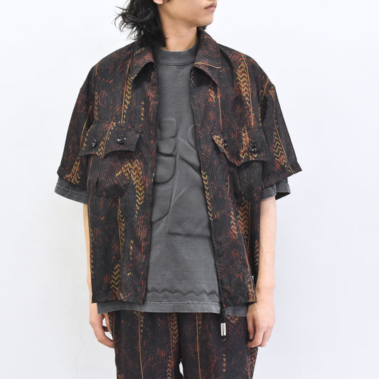 elephant TRIBAL fabrics / NO A/C Zip Shirt - BLACK