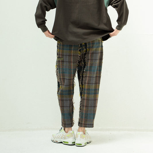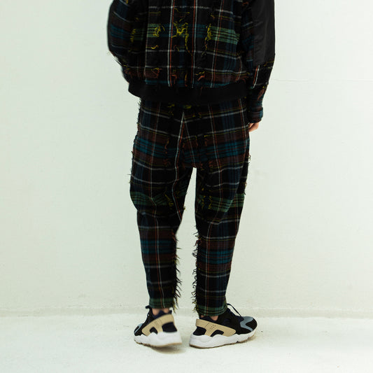 STOF / 先行予約 FRINGE WOOL CHECK WIDE SLACKS - BLACK