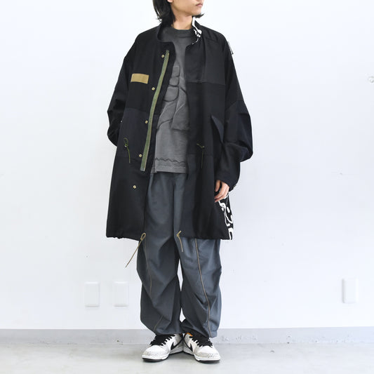 BODYSONG. / PATCHWORK MIL COAT MADE BY DISASSEMBLING AND RECONSTRUCTING A BUSINESS SUIT