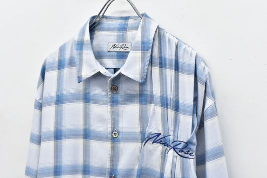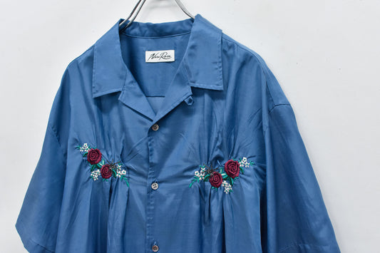 NewRose / Embroidery Wrinklework Shirt - BLUE