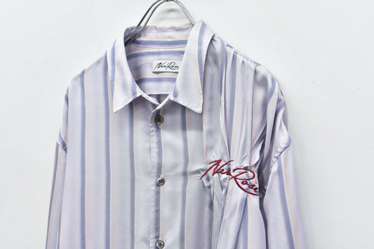 NewRose / Embroidery Wrinklework Long-sleeve Shirt - BLUE OMBRE STRIPE