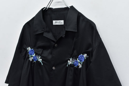 NewRose / Embroidery Wrinklework Shirt - BLACK