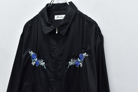 NewRose / Embroidery Wrinklework Blouson - BLACK