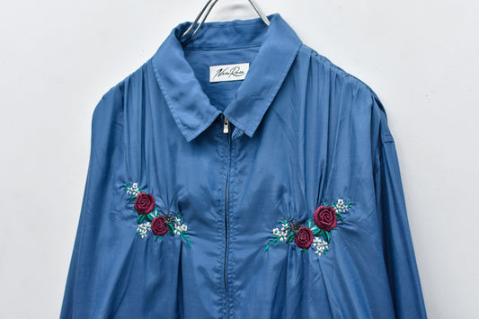 NewRose / Embroidery Wrinklework Blouson - BLUE