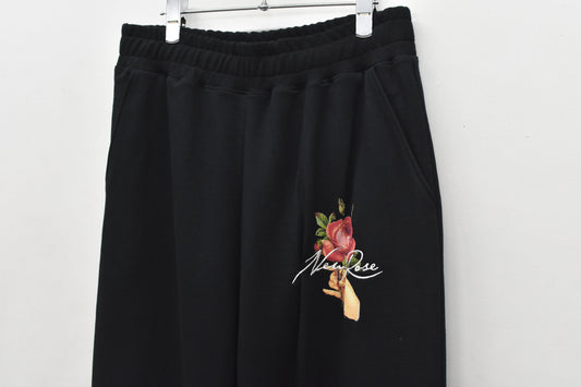 NewRose / Embroidery Wrinklework Sweatpants - BLACK