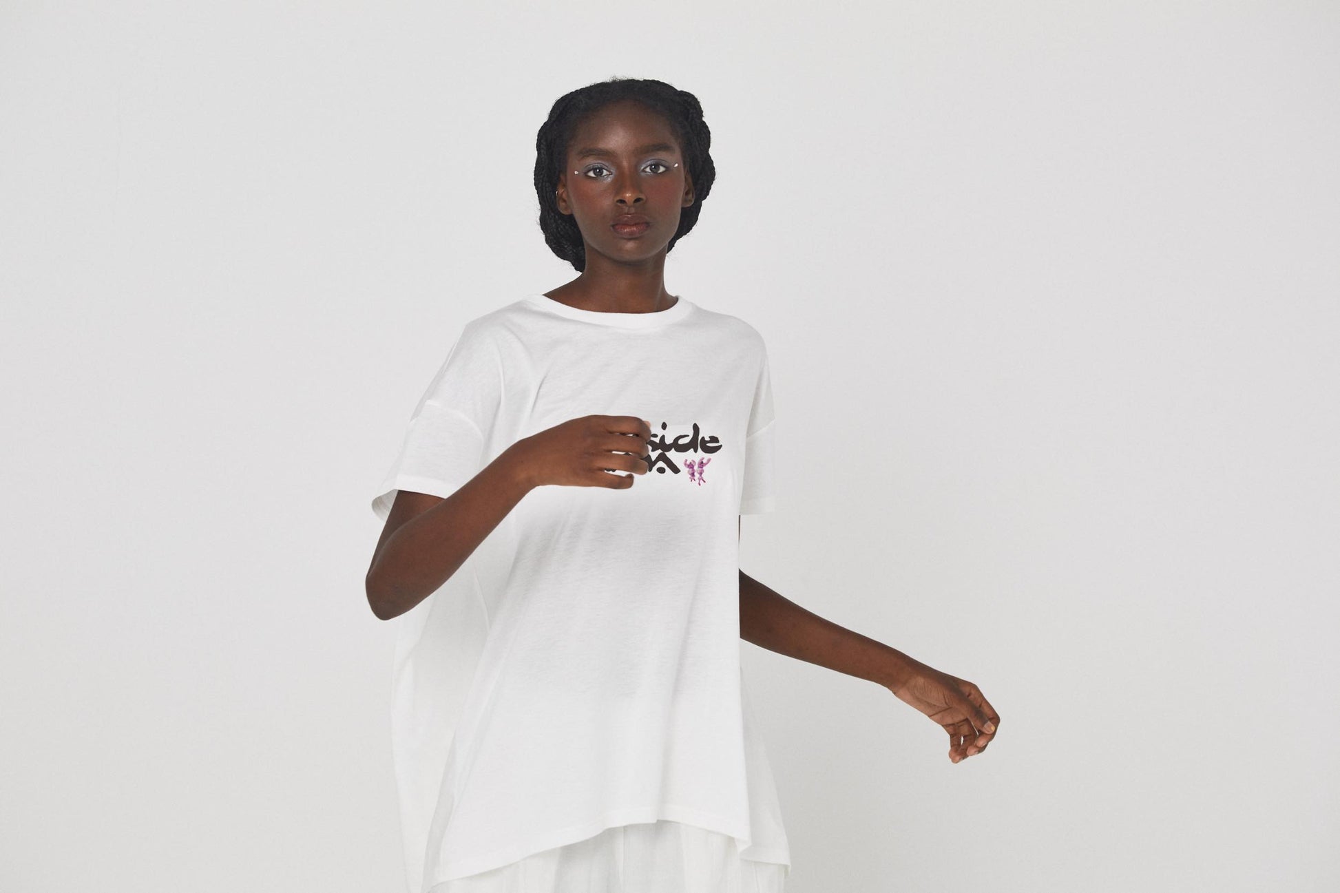 BEDSIDEDRAMA / BEDSIDE SISTERS Flare T-Shirt - WHITE