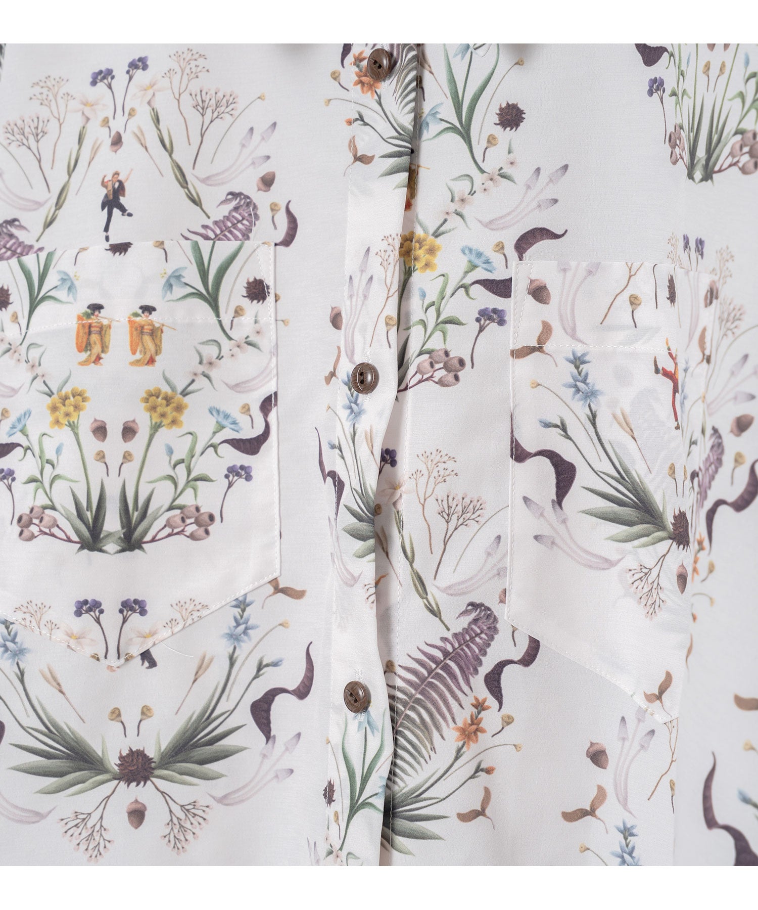 古今東西のダンスの名シーンを集結させたオリジナルのテキスタイルが魅力的なケープシャツ。