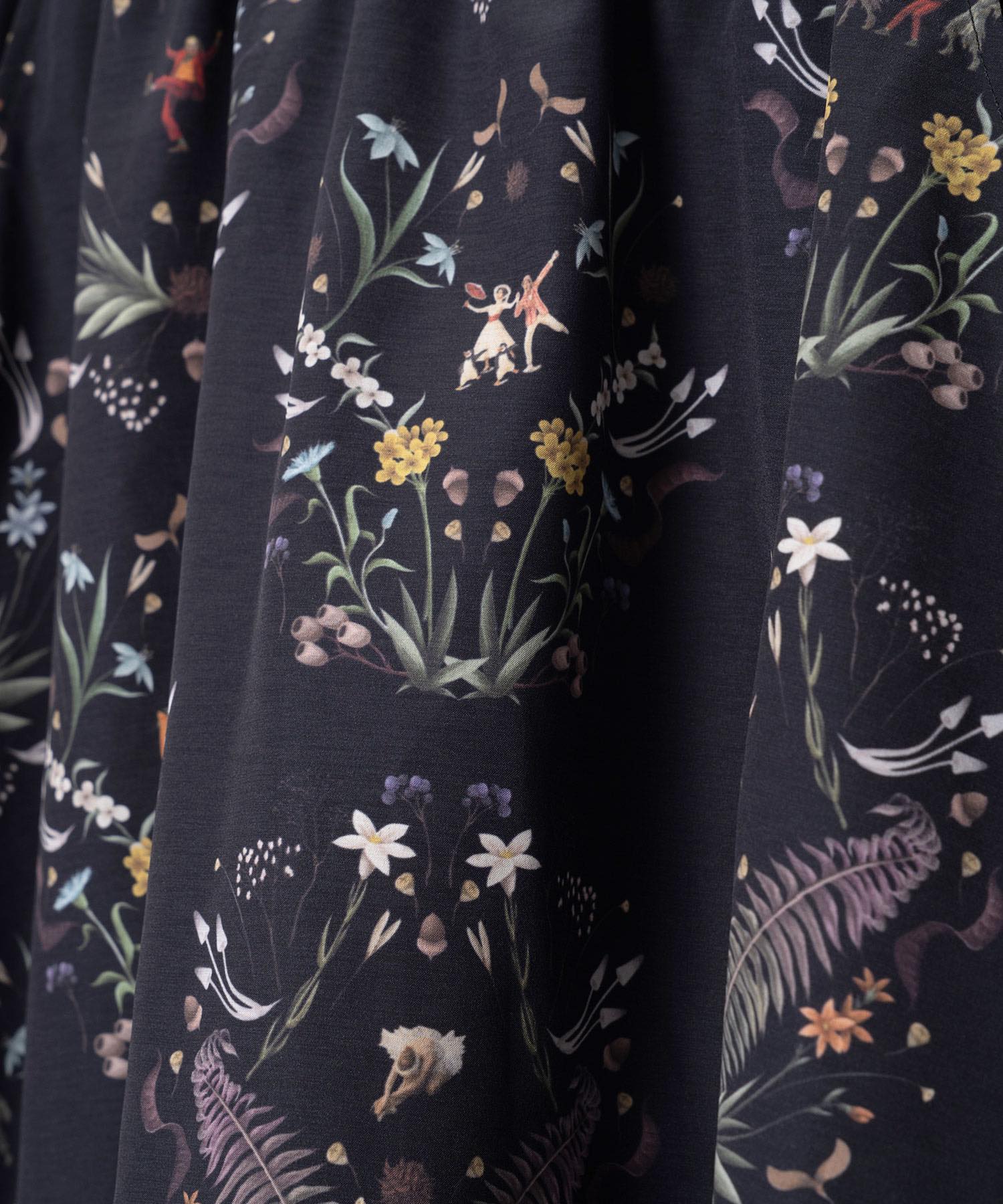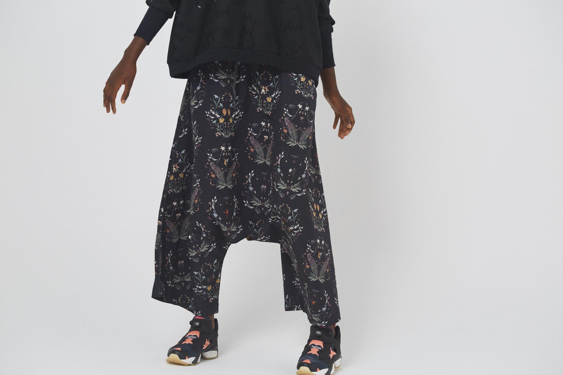 古今東西のダンスの名シーンを集結させたオリジナルのテキスタイルが魅力的なリラックスワイドパンツ。スカートのようなボリューム感でシンプルでコンパクトなトップスとの相性も◎。速乾、イージーケア素材を採用しており、ウエストはゴム&スピンドル仕様でストレスなくご着用いただけます。デザイナー自身がやりすぎたと振り返るモチーフの多さも魅力の国宝級アイテムです。