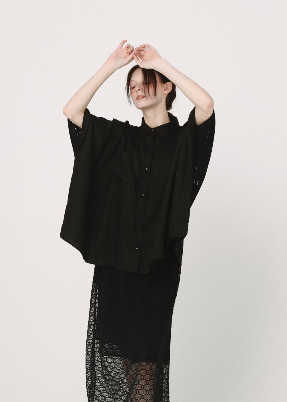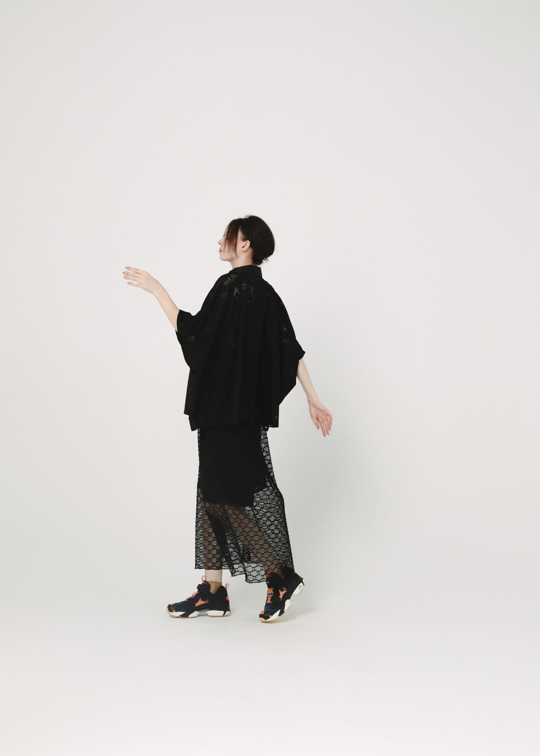 BEDSIDEDRAMA / Dancing Lace poncho shirt - BLACK