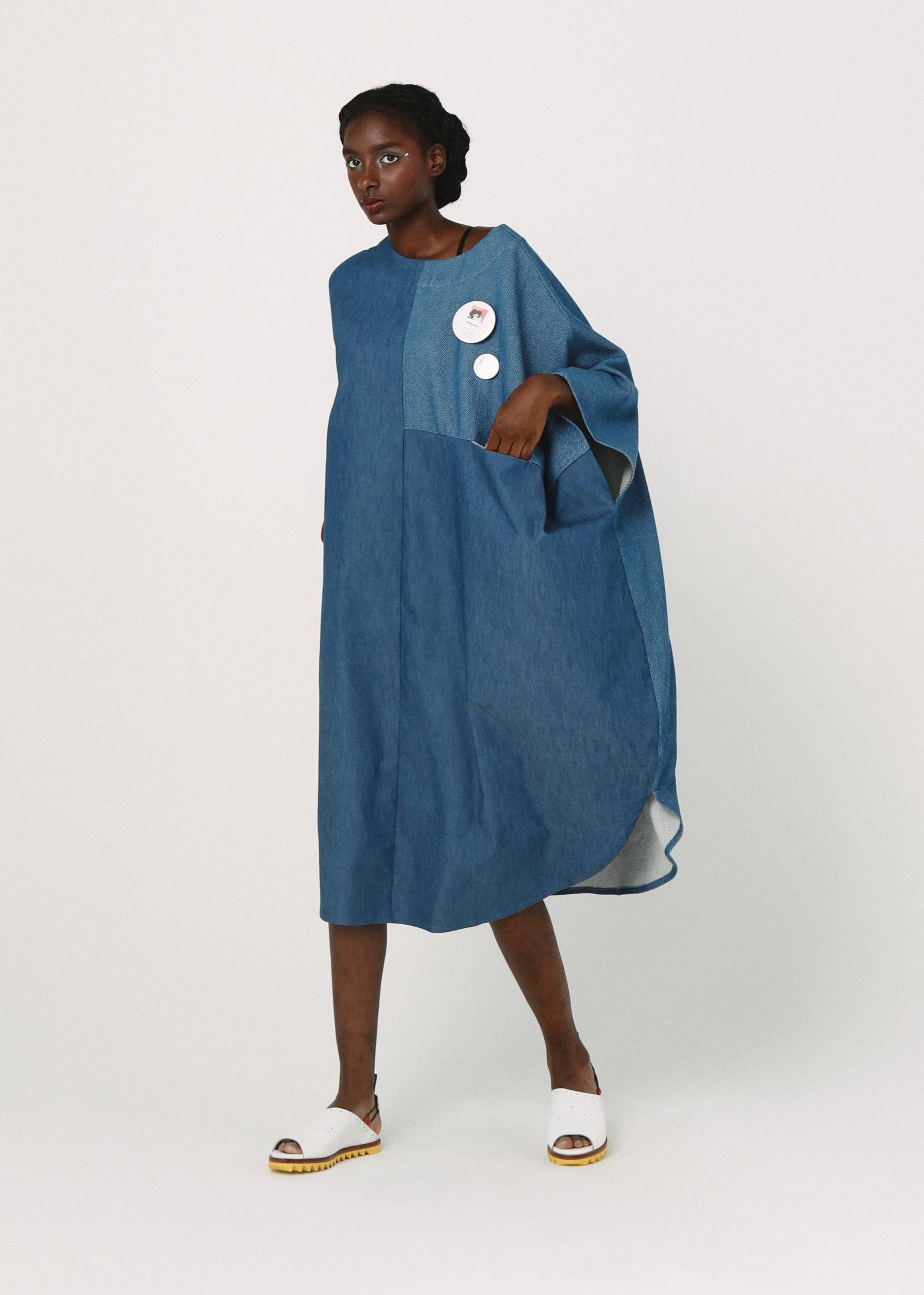 絶妙な切り替えが印象的なビッグシルエットのワンピース。