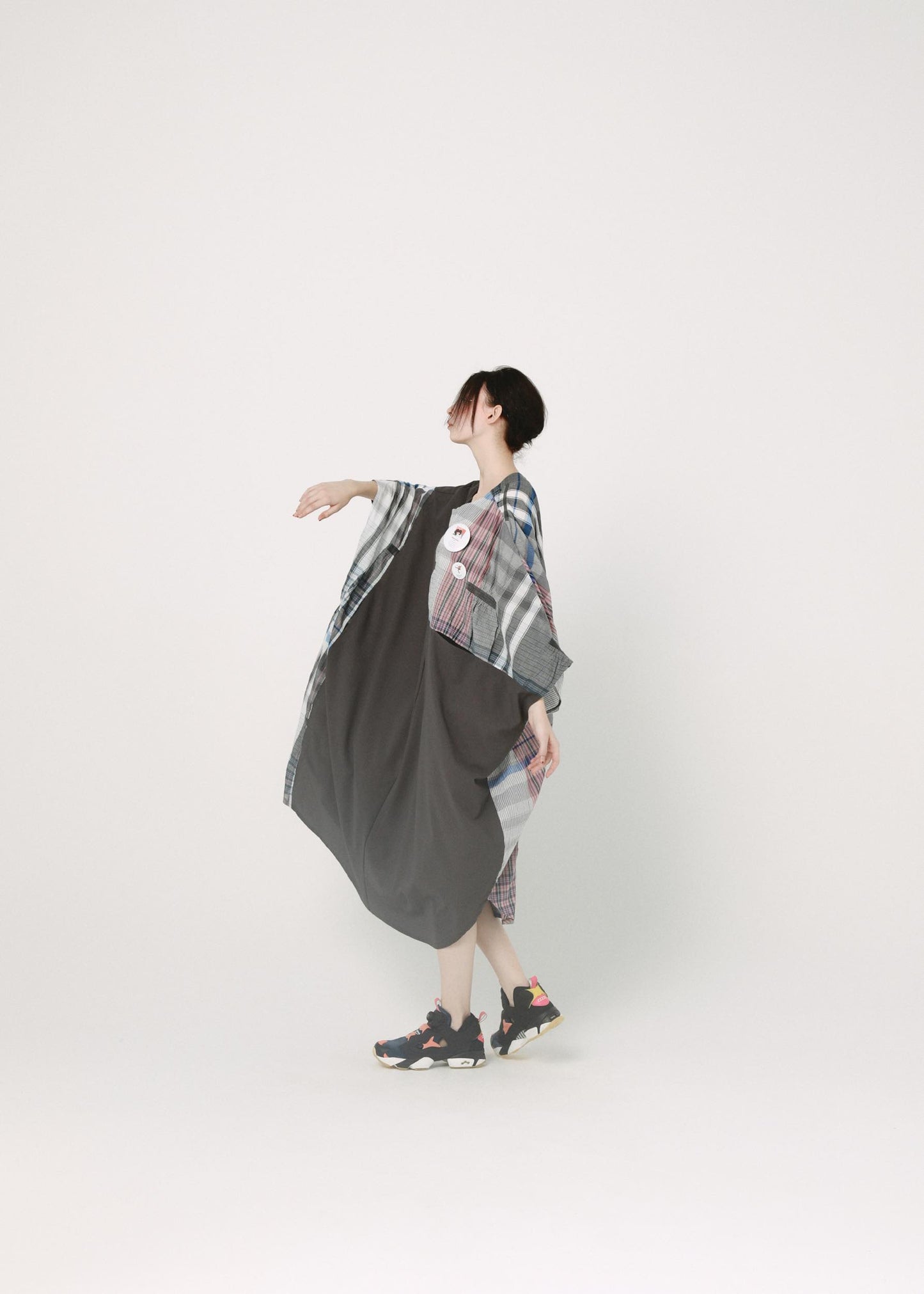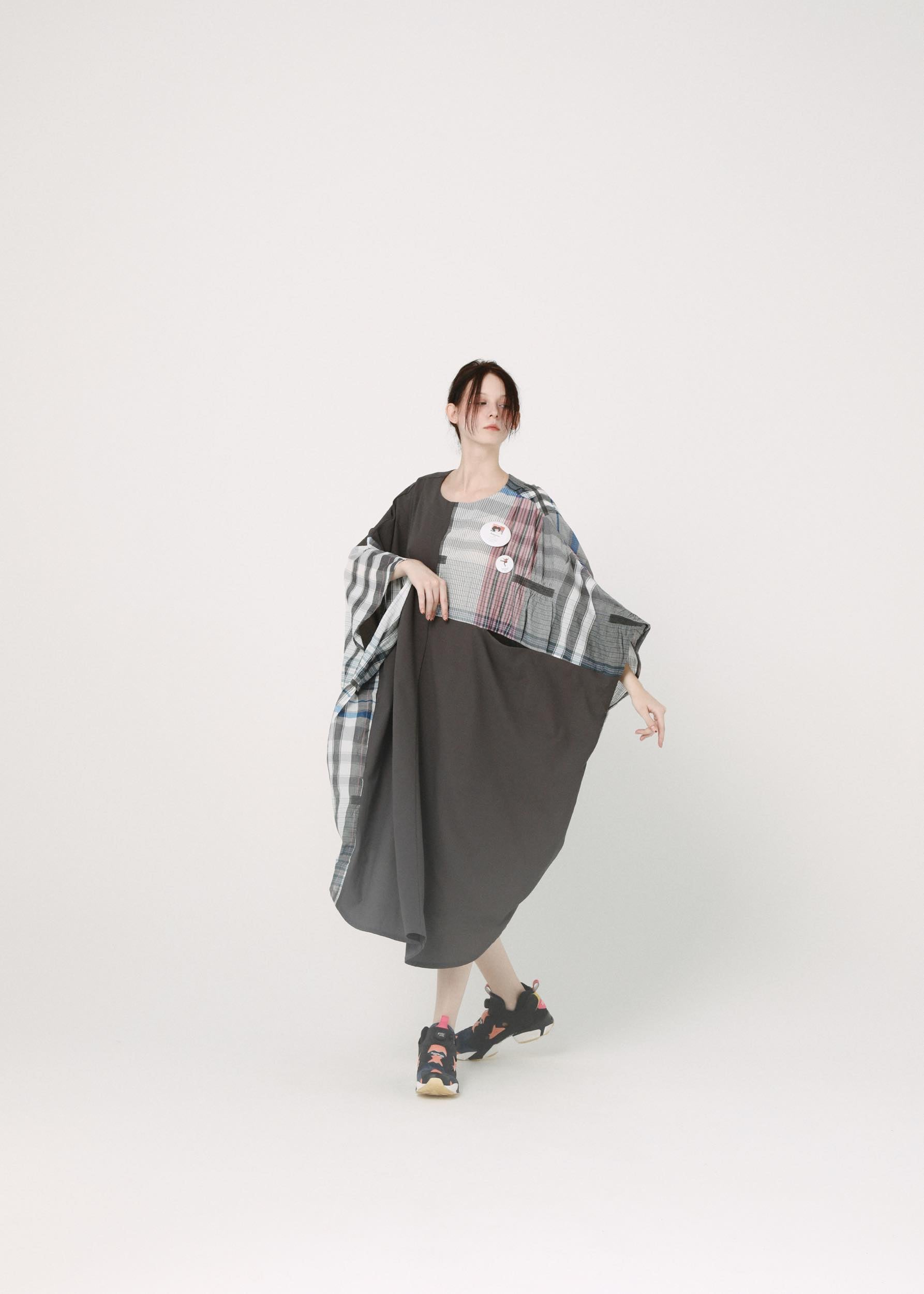 絶妙な切り替えが印象的なビッグシルエットのワンピース。