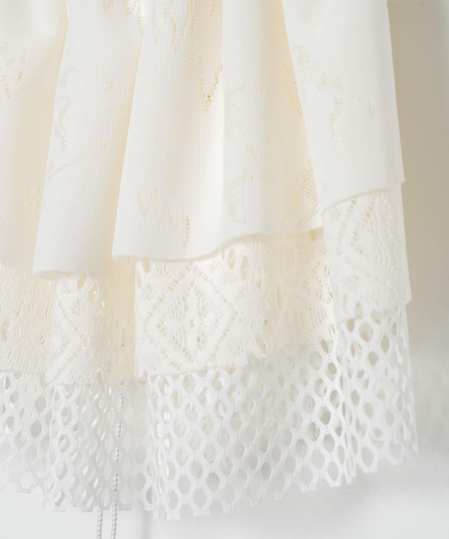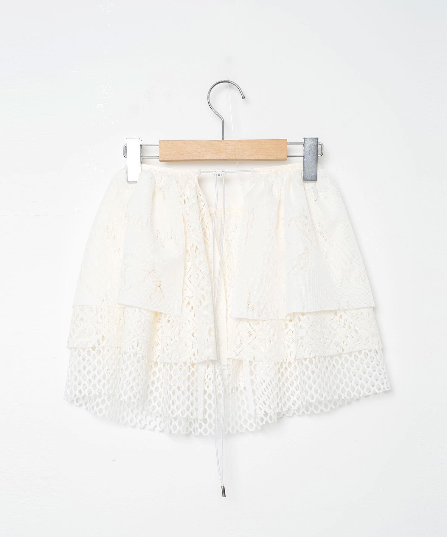 わかる人にはわかる過去と現在がクロスオーバーしたようなデザインのオリジナルのレース素材と異素材レースを組み合わせたチュチュスカート。スカートとして着用したり、アクササリー的に肩からたすきがけにしたり、自由度の高い着こなしが楽しめるデザイン性の高い逸品です。