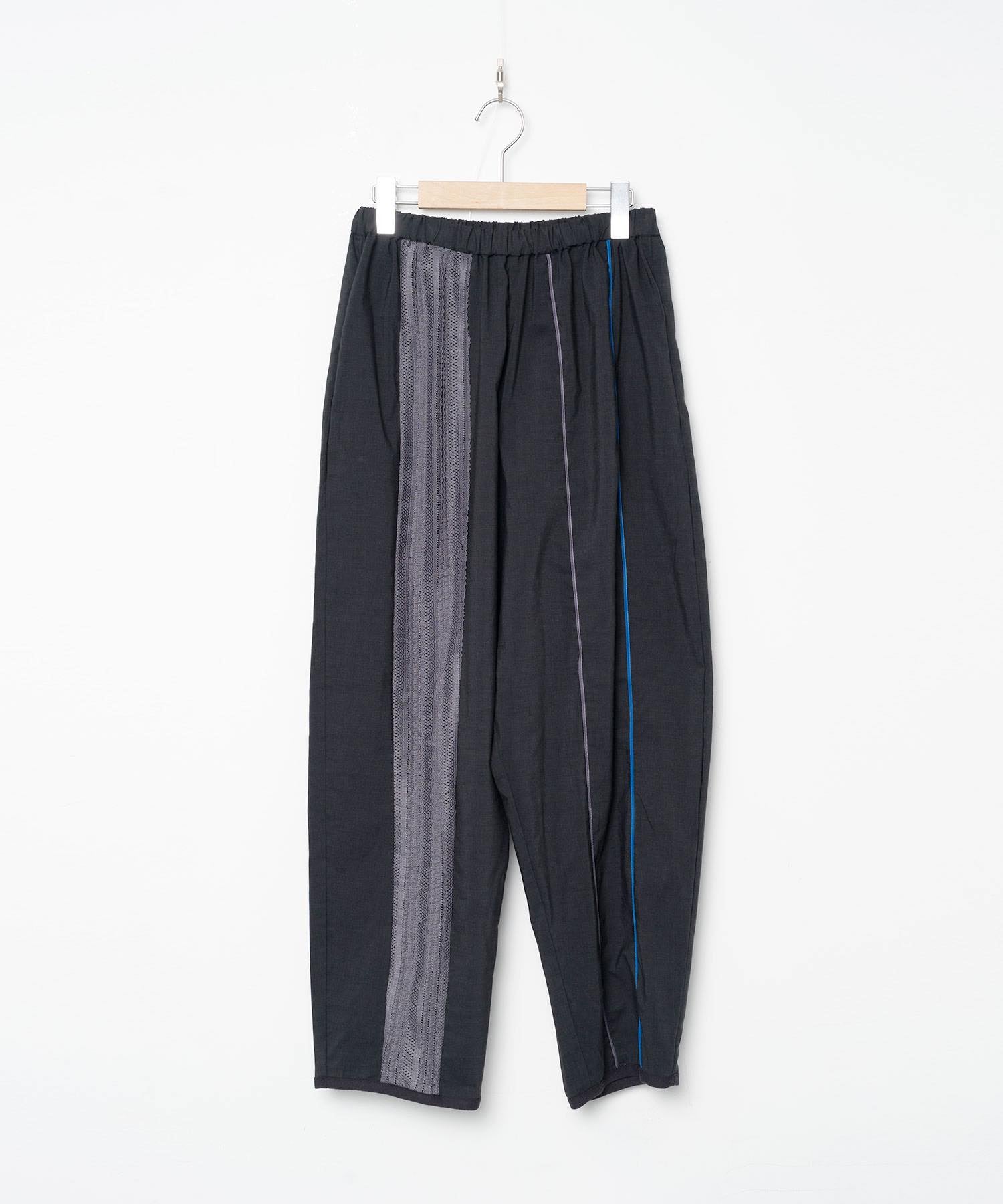 リネン混の涼しげな素材感、きれいなシルエット、アクセントのカラートリミング。ウエストがゴム&ひも仕様でストレスなく着用できる等選ばれる理由が目白押しの一推しボトムです。目白押しは鳥のメジロがずらっと並んで(木の枝や電線などに)とまることからそういうらしいですよ。