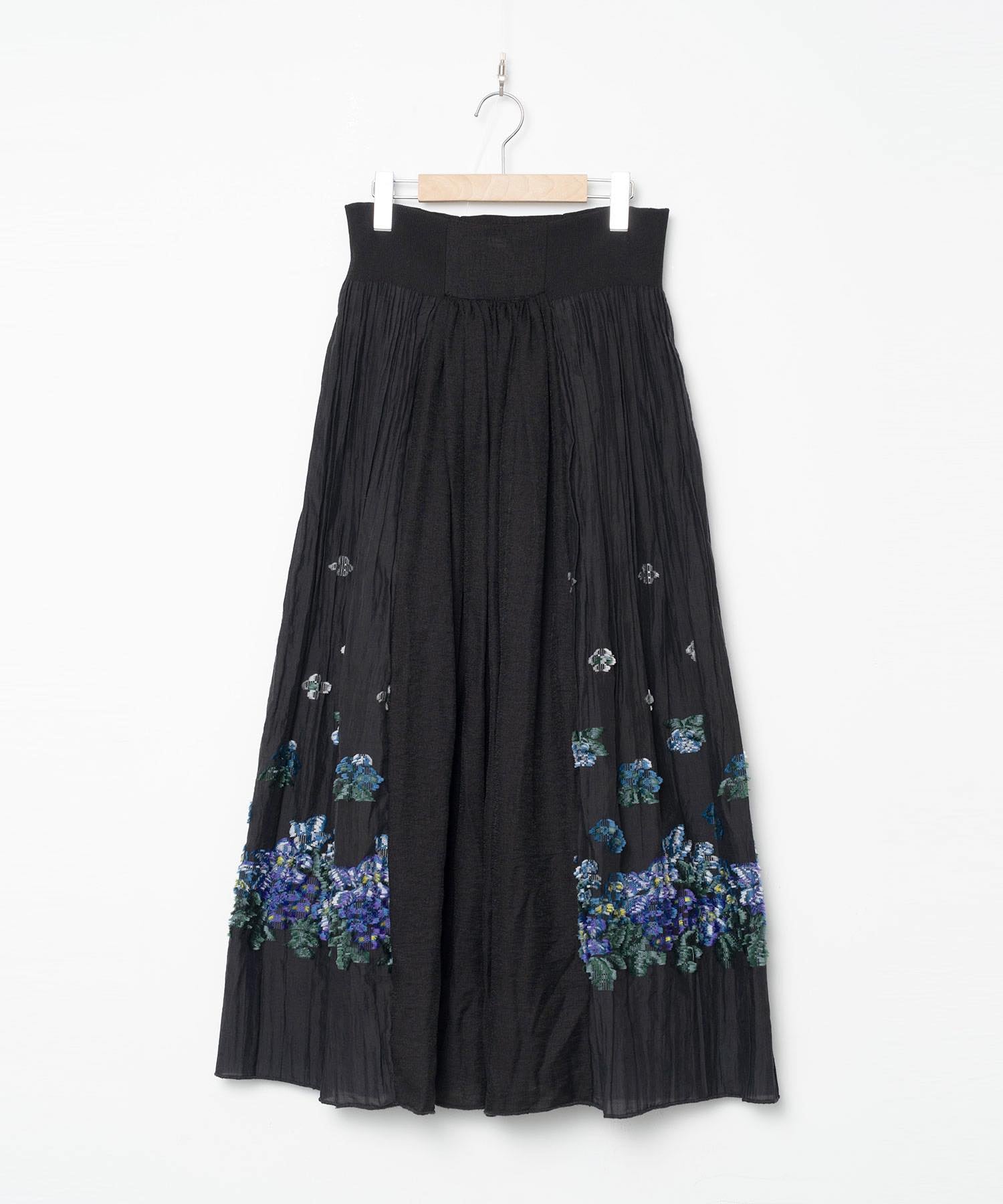 絶妙な配色のオリジナルのフラワーカットジャカードが控えめに主張する、心が浮き立つようなスカートです。