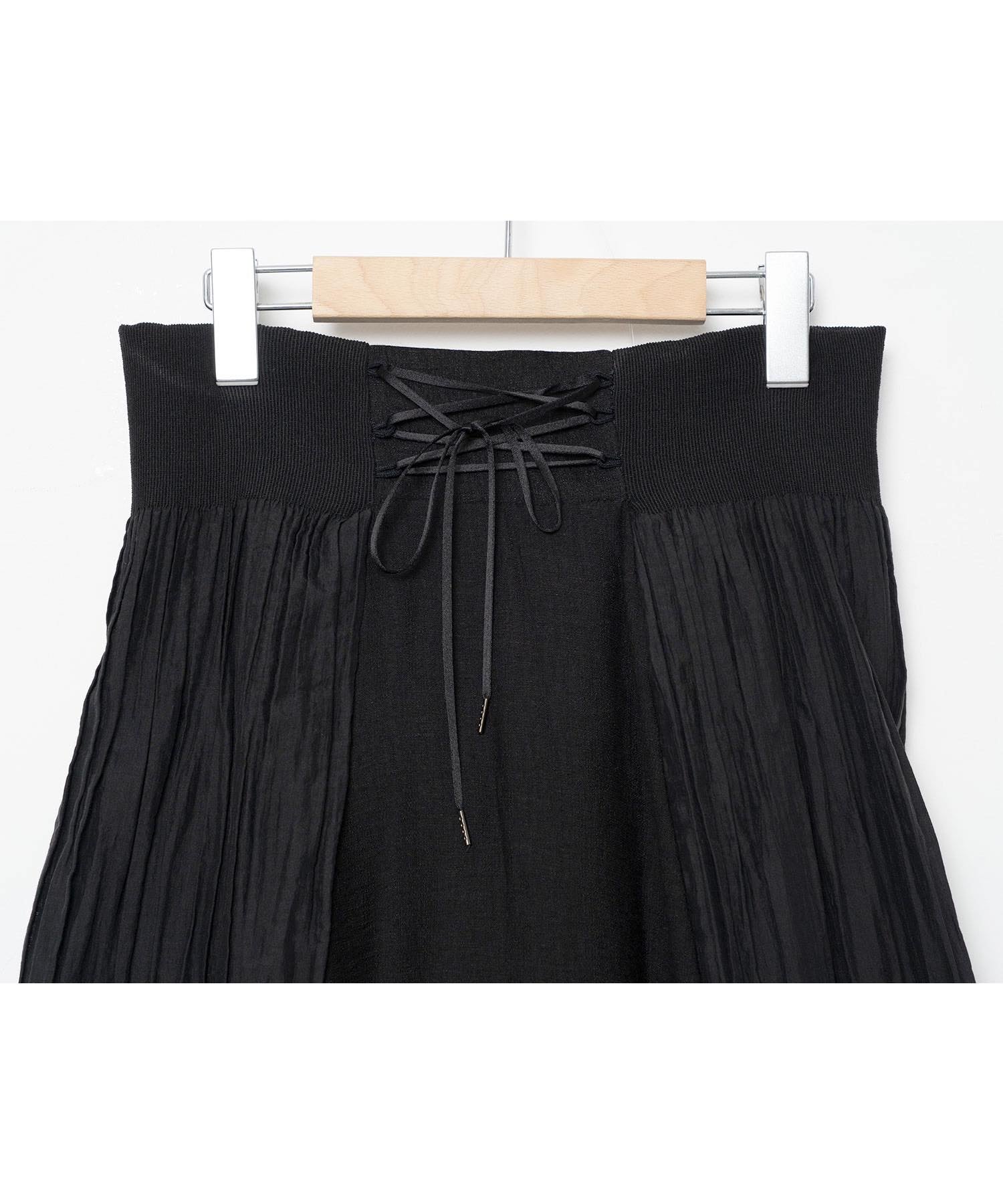 ウエスト部分にレースアップディティールを採用しており、トップスをインすることで違った雰囲気を楽しめます。