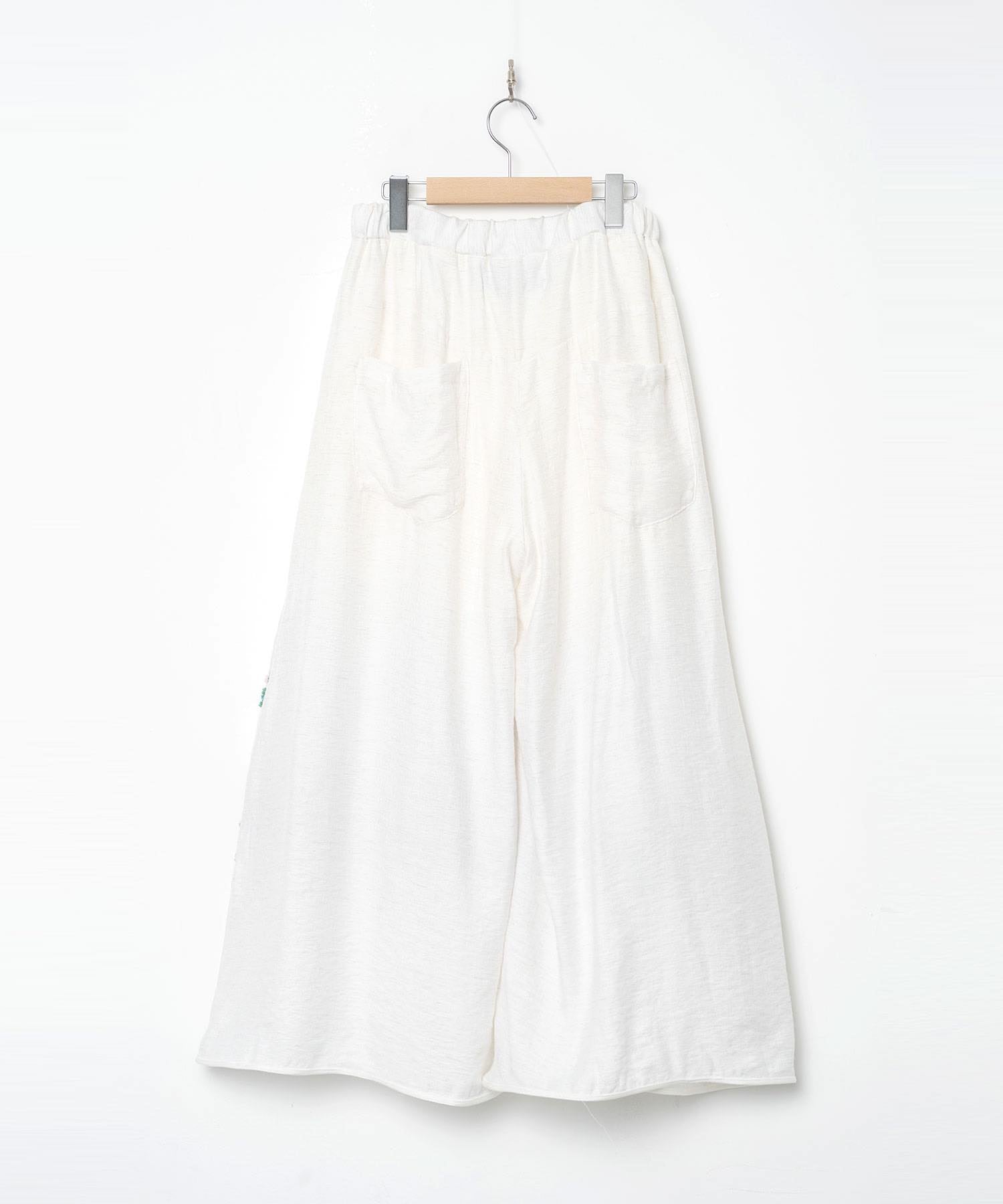 絶妙な配色のオリジナルのフラワーカットジャカードが控えめに主張する、心が浮き立つようなワイドパンツです。ドライタッチ、イージーケアで非常に軽い素材感でウエストもゴム仕様なのでストレスなくご着用いただけます。コンパクトでシンプルな無地トップスとの相性も◎