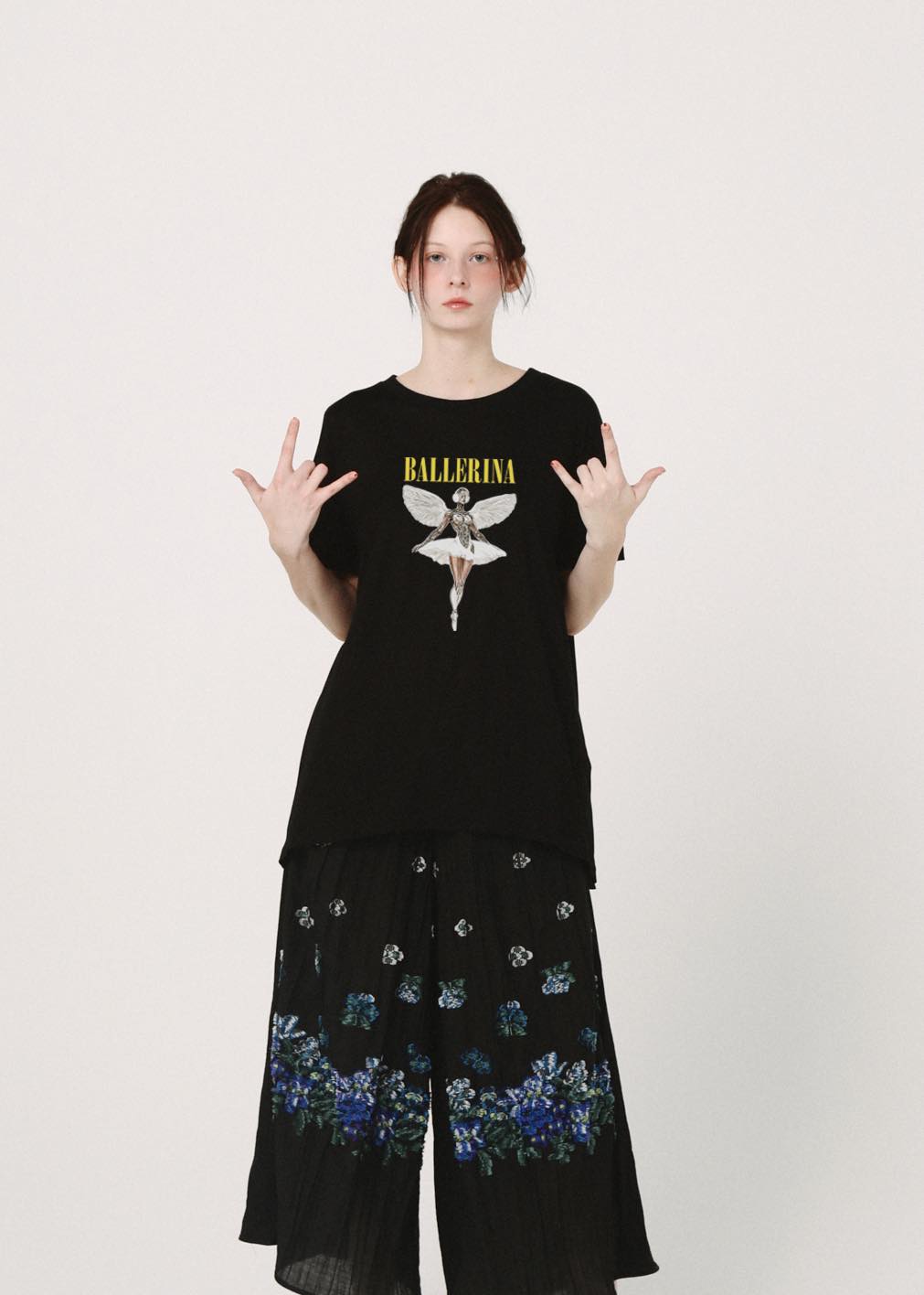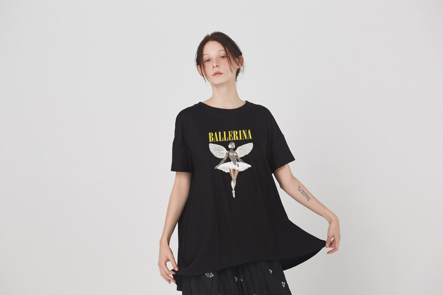 BEDSIDEDRAMA / NEO BALLERINA Flare T-Shirt - BLACK