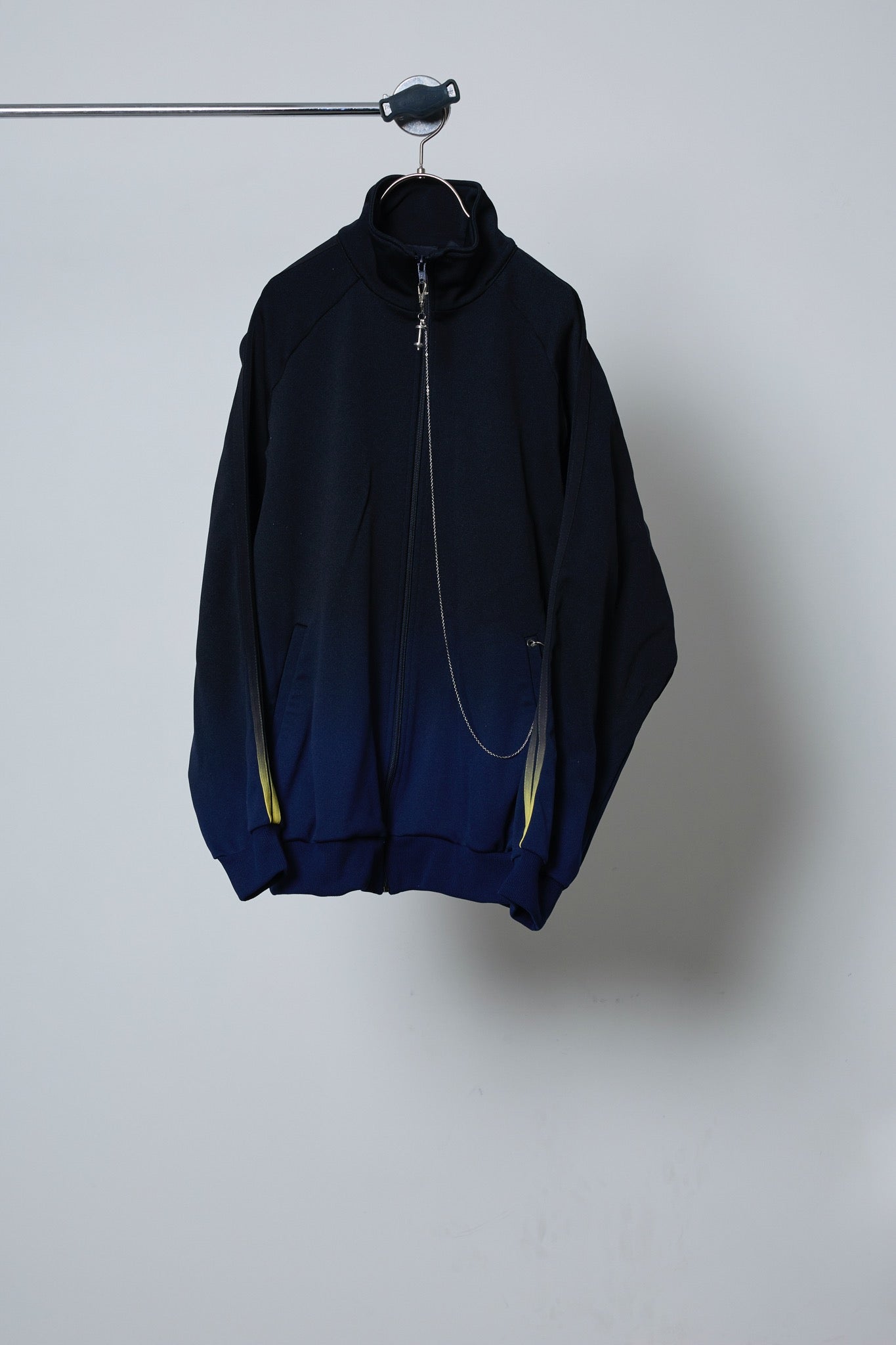 美しいグラデーション染めが特徴のトラックジャケット。ランダムに付属するチェーンパーツとチャームが、さりげないアクセントをプラスします。※こちらは職人が手作業で染色しているため、染料の飛び散りや、色の境界線に多少の色むらが生じる場合がございます。手作業ならではの風合いとして、ご理解いただけますと幸いです。