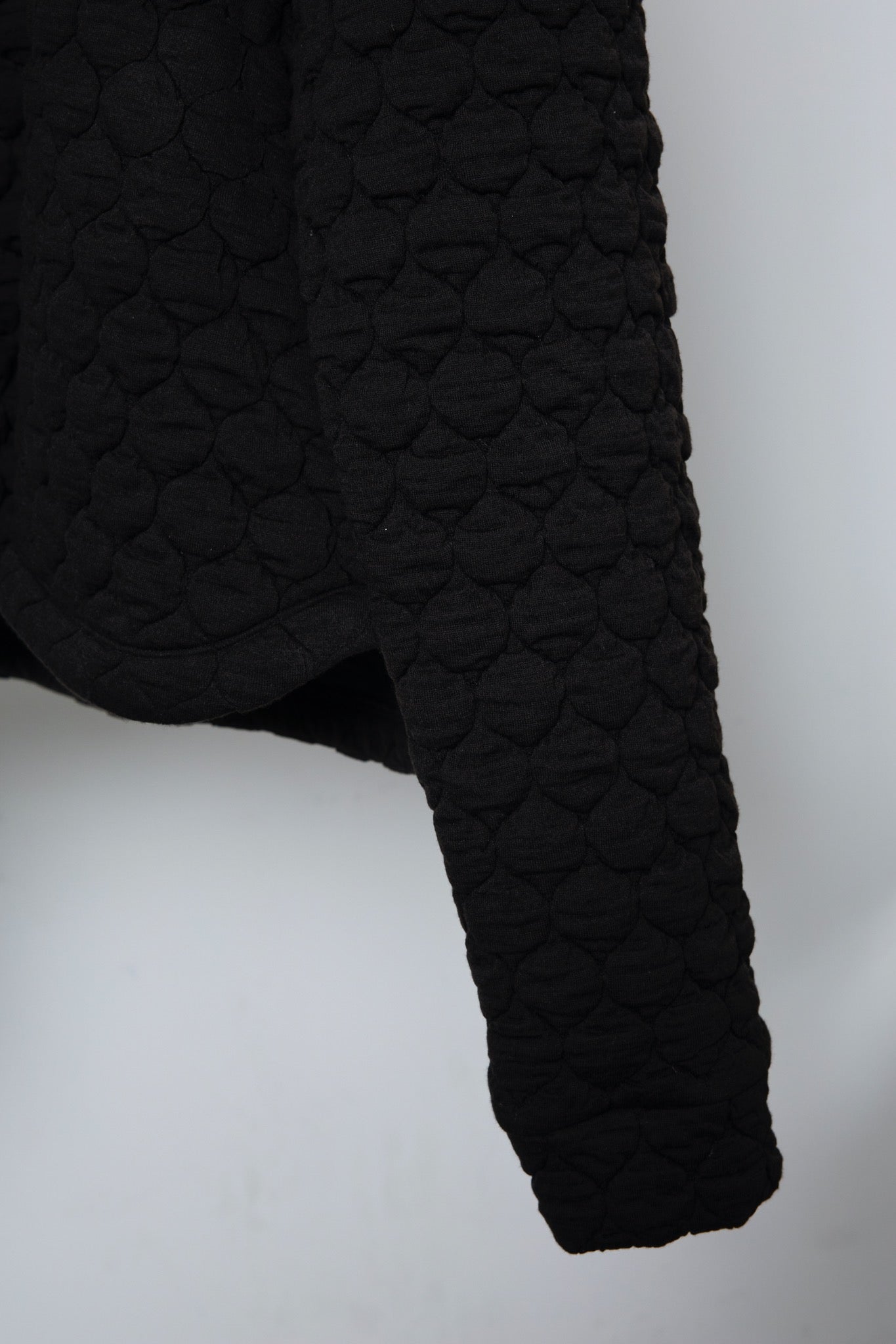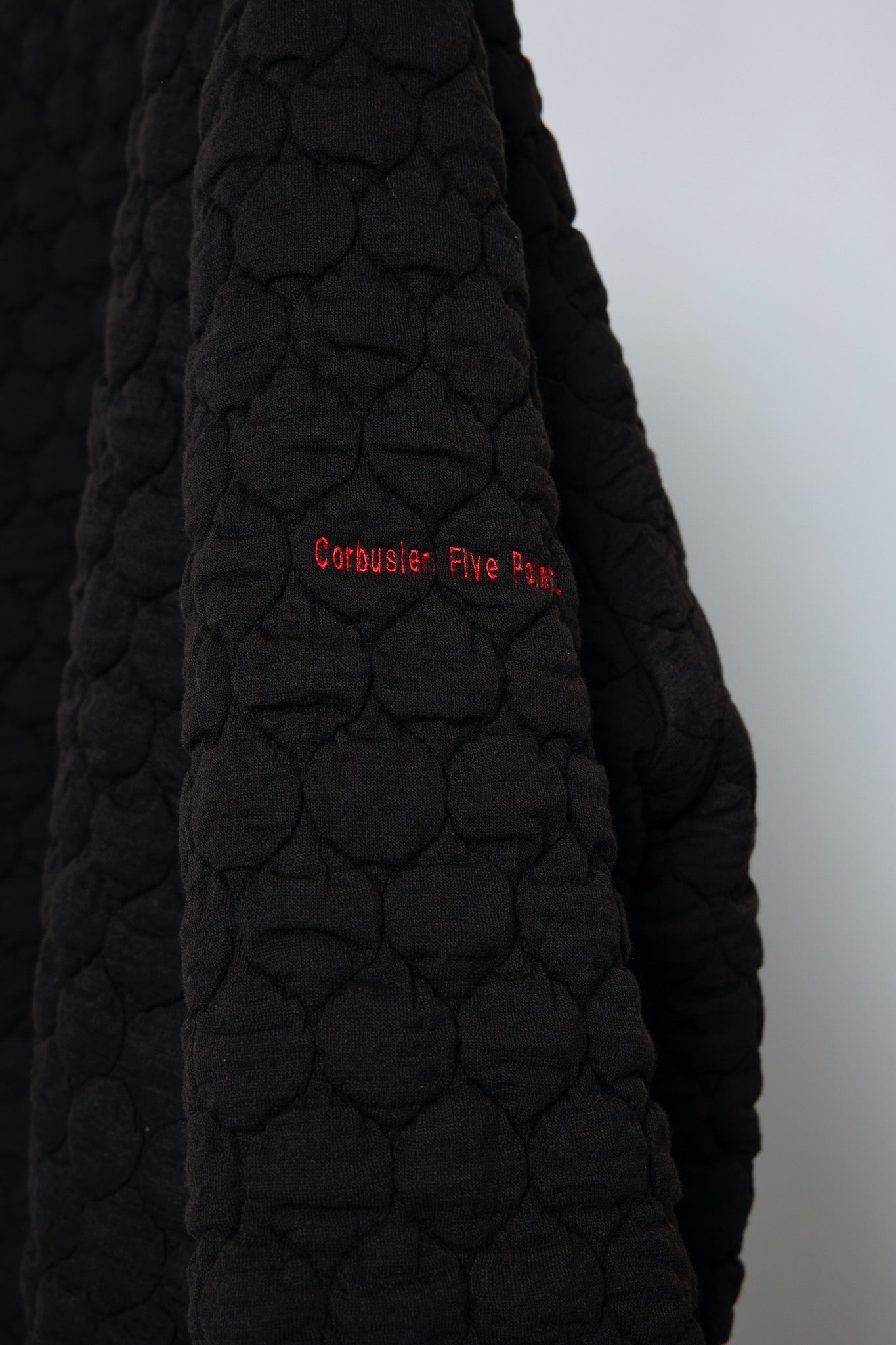 ソフトな肌触りのキルティングニット生地を使用。編みでキルティングを表現しており、極上の着心地を実現しました。テーマの一部である「Corbusier: Five Points」の刺繍が、さりげないアクセントになっています。
