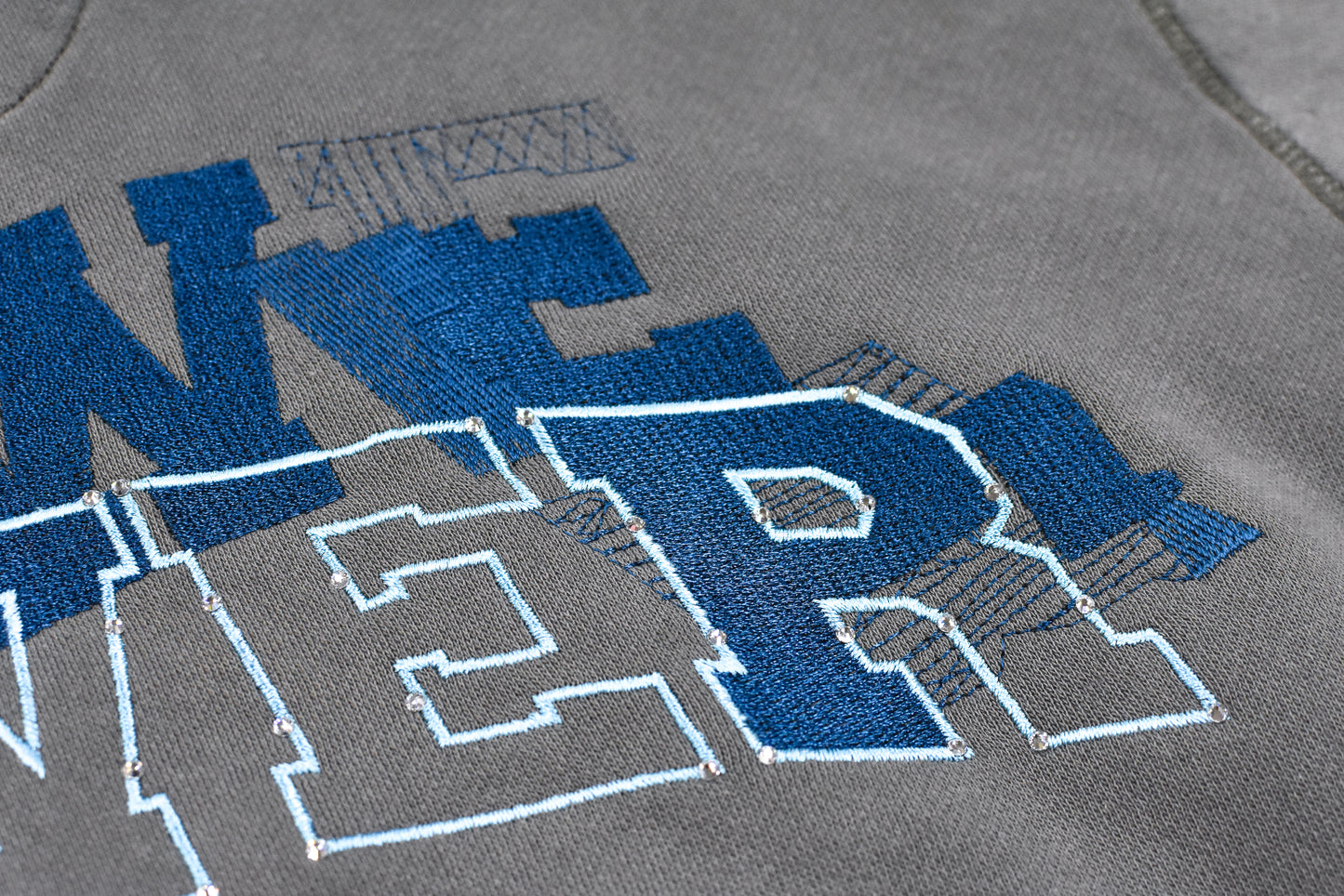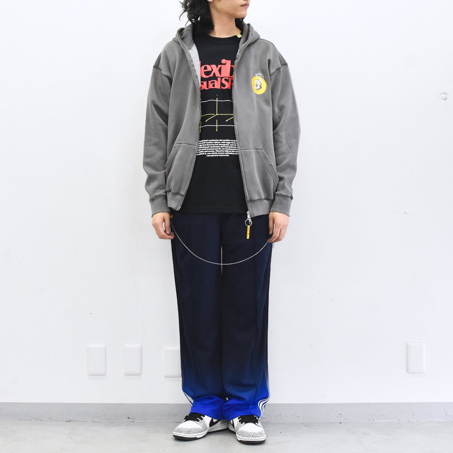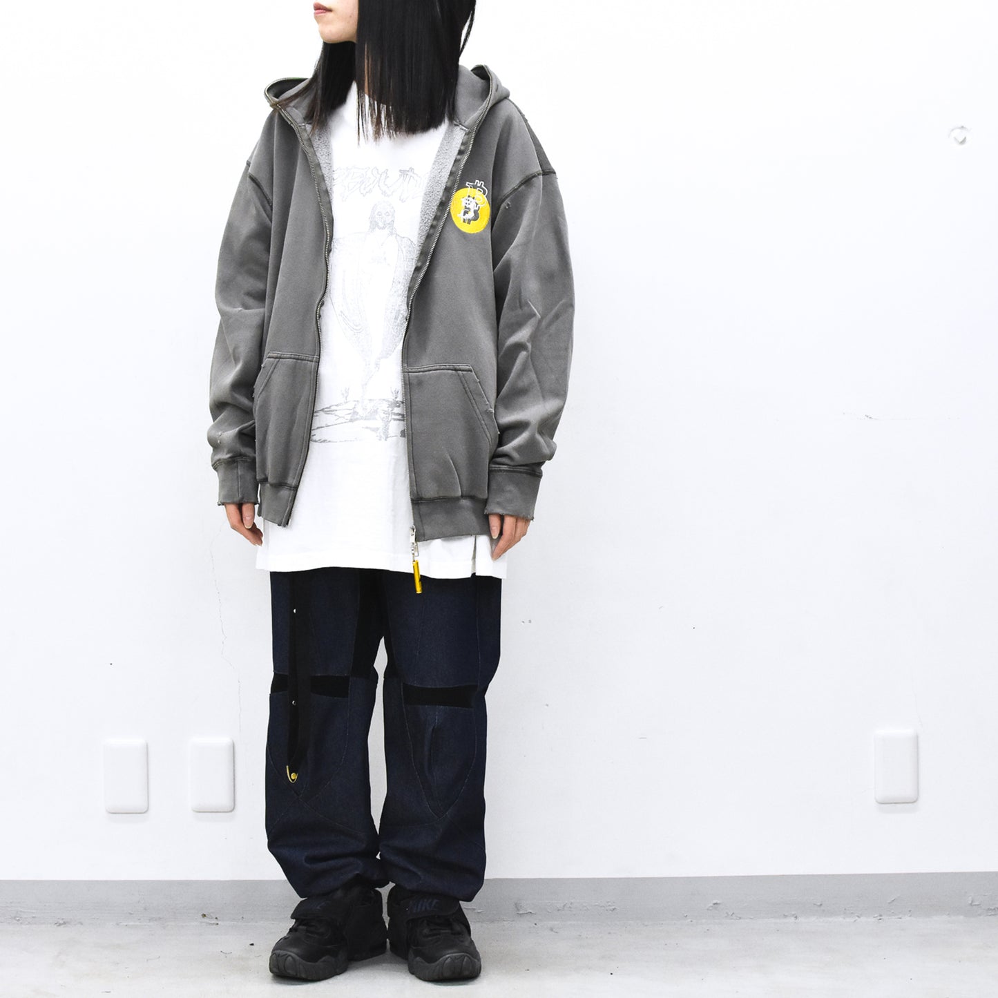 現代アーティストNUKEMEとのコラボレーションによるグリッチ刺繍のフーディ。