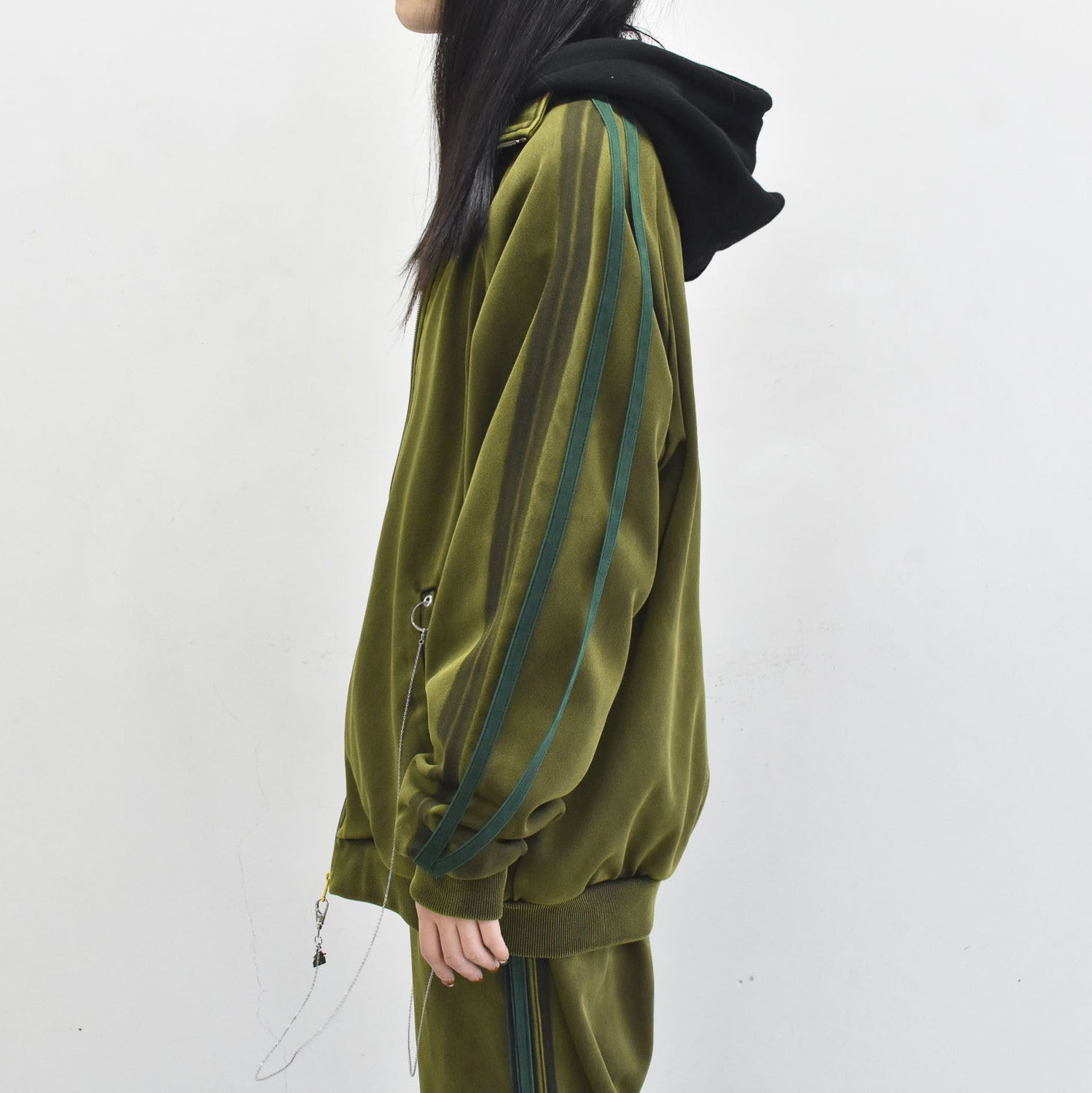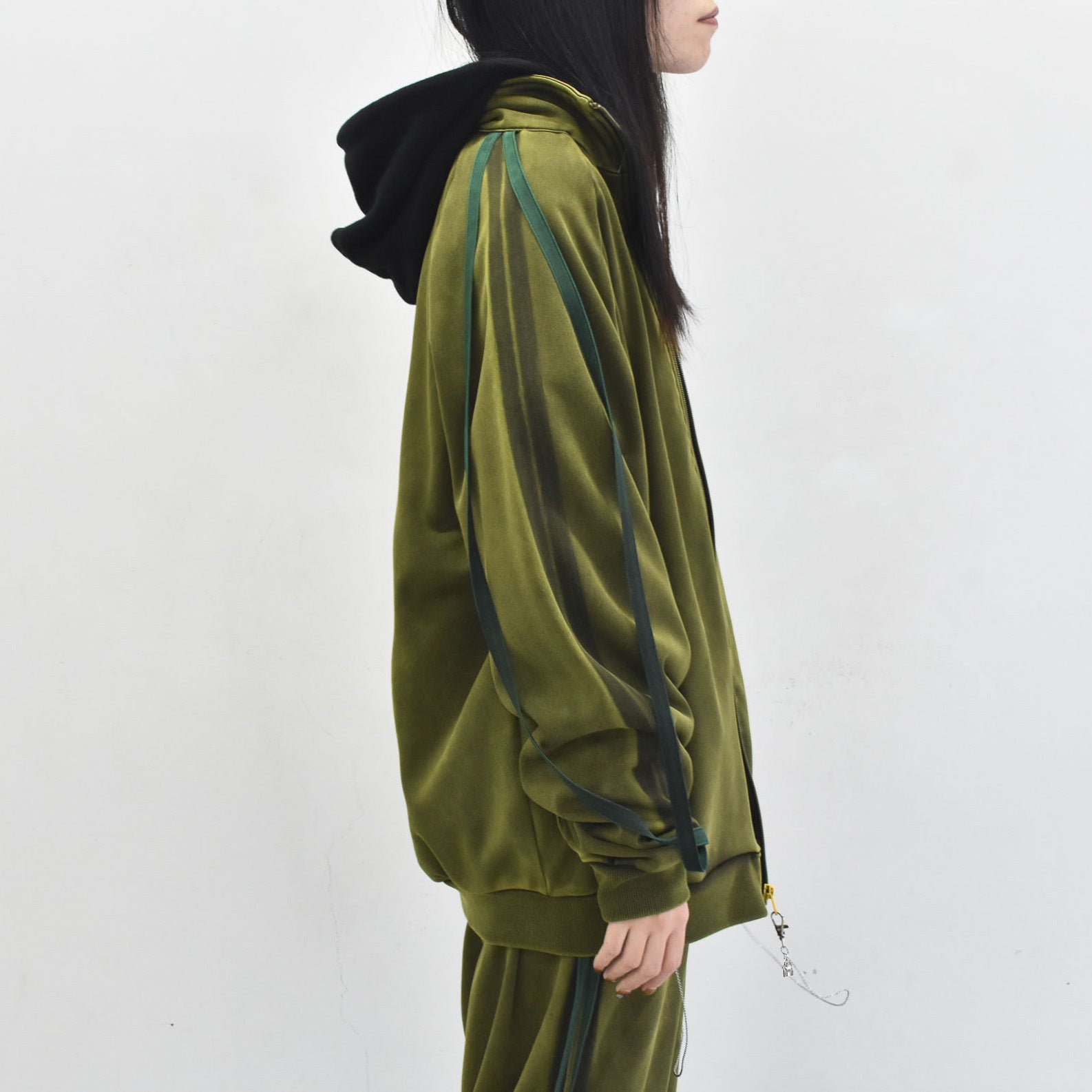 顔料を使用した後染め加工による、独特な風合いのトラックジャケット。