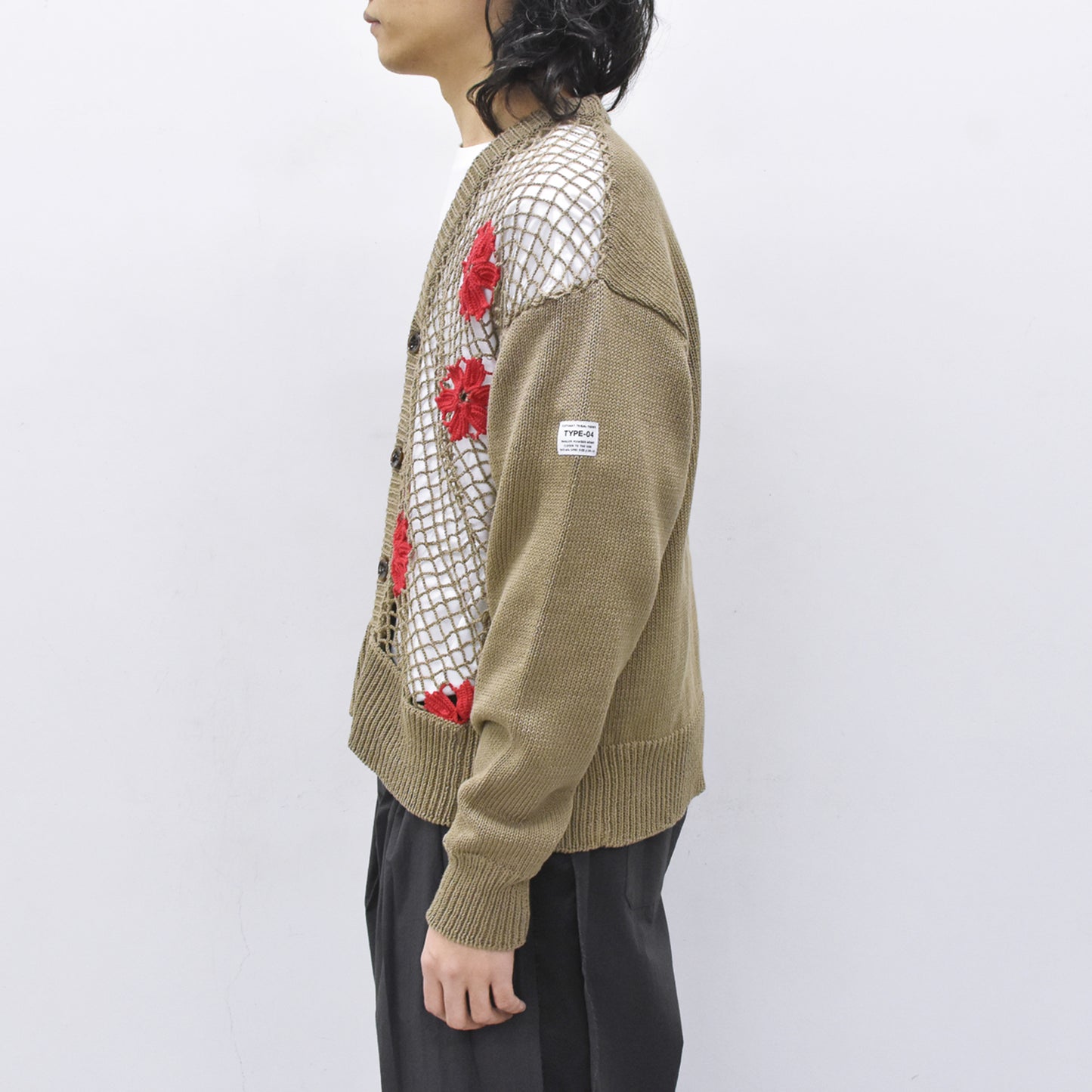 elephant TRIBAL fabrics / Flower Crochet Cardigan - BEIGE