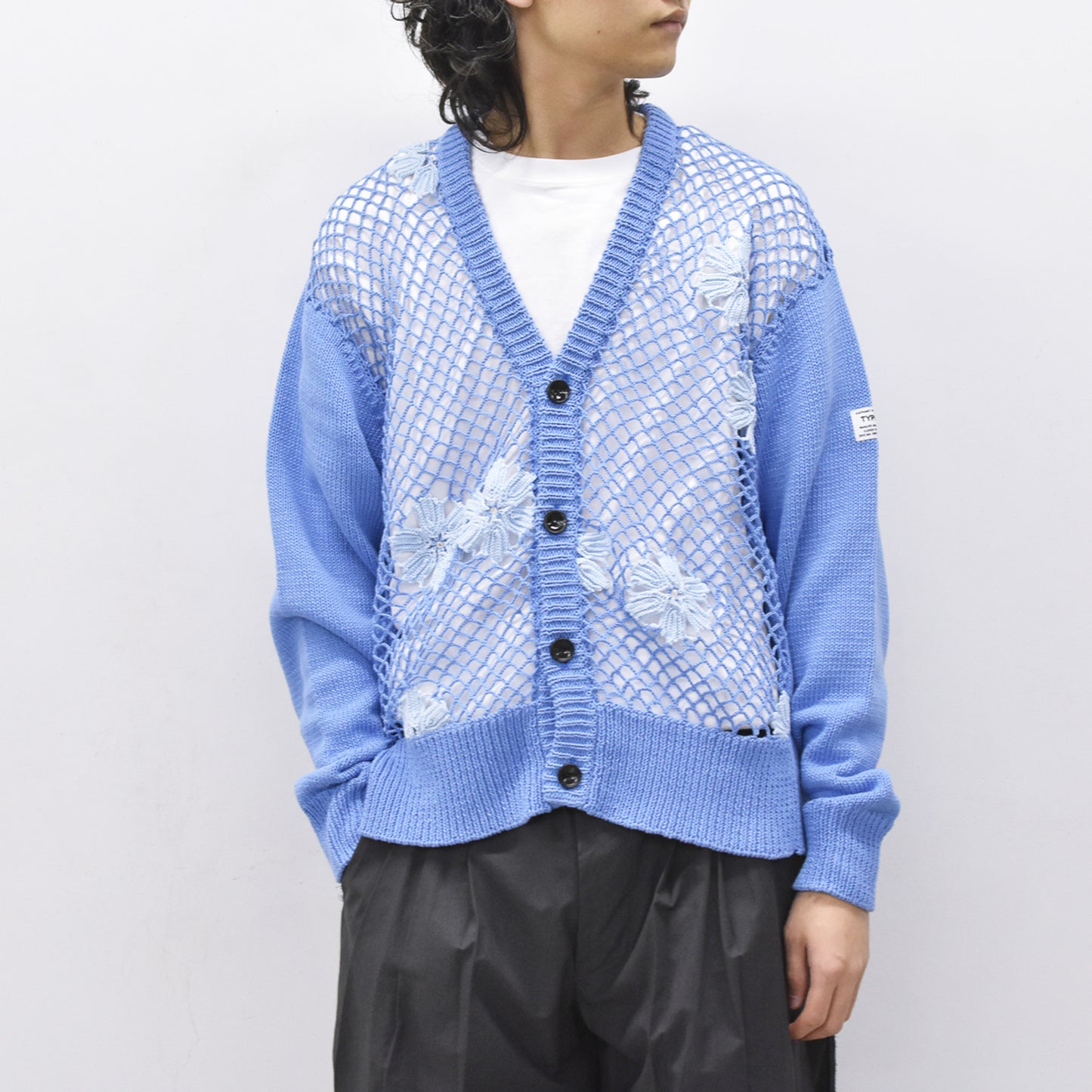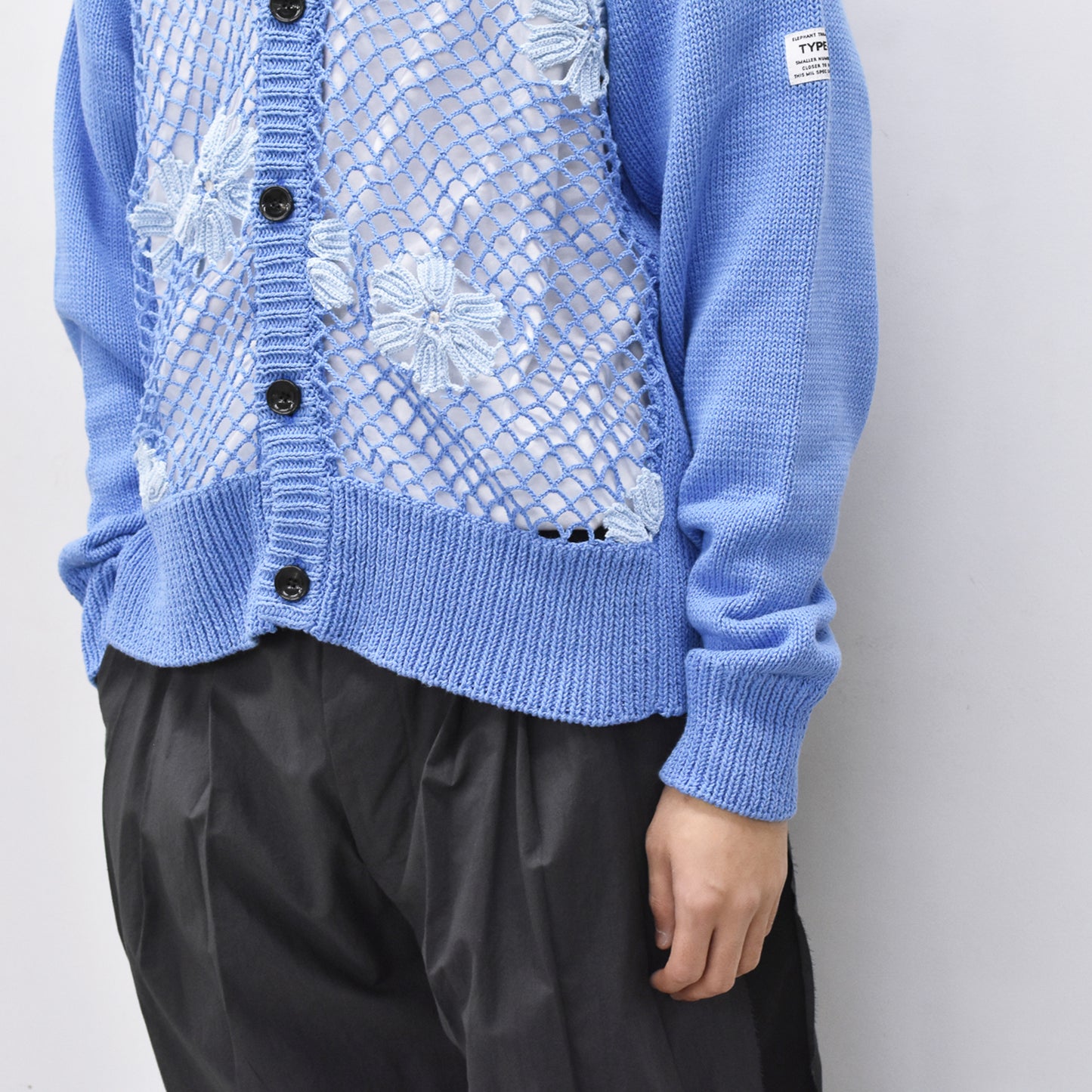 elephant TRIBAL fabrics / Flower Crochet Cardigan - SAX