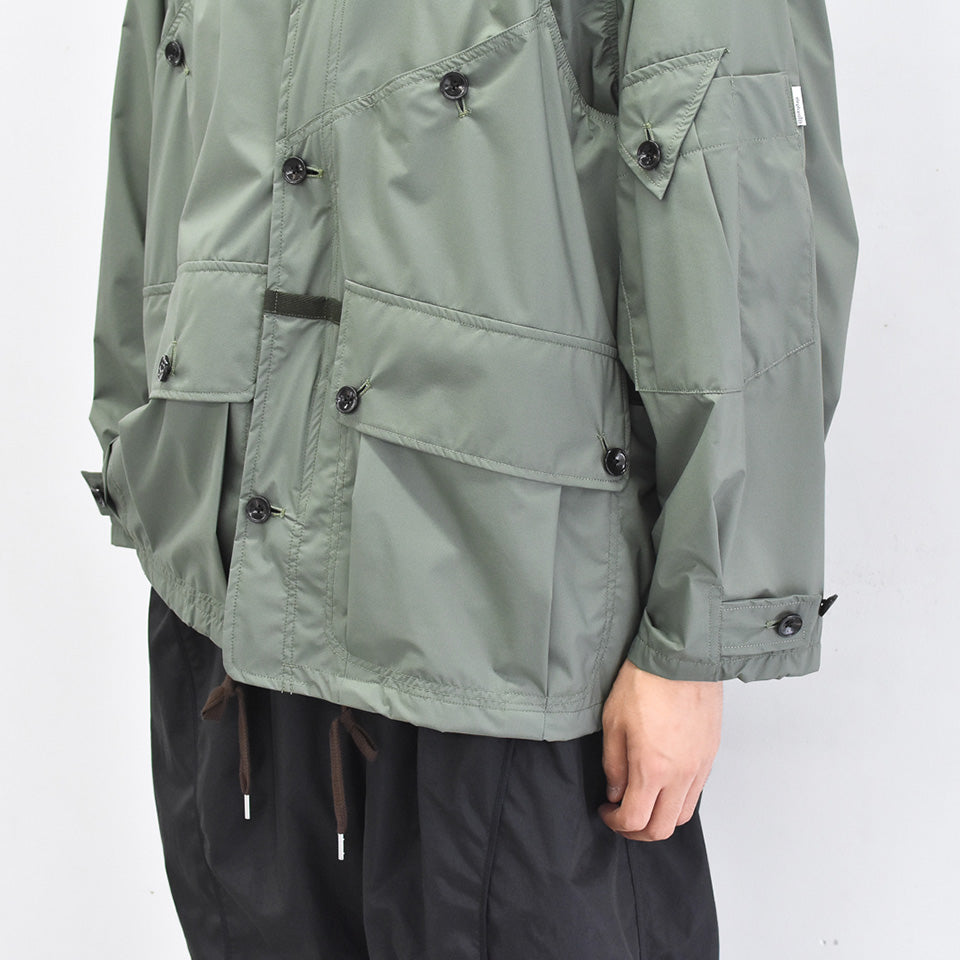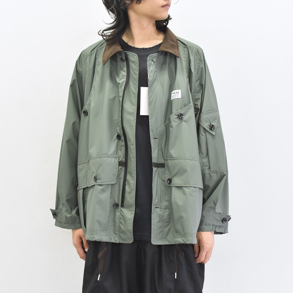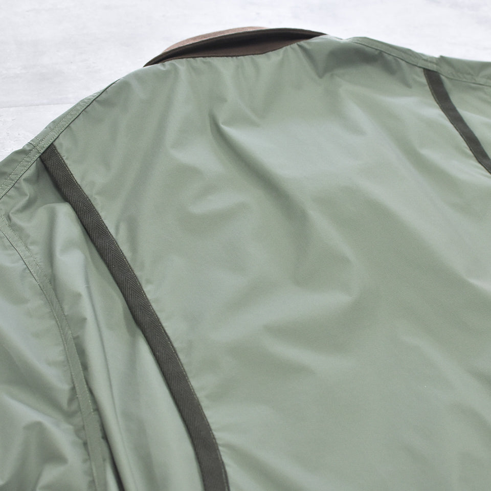 クラシックなディテールに反して、機能性のあるファブリックで仕立てたハンティングジャケット。