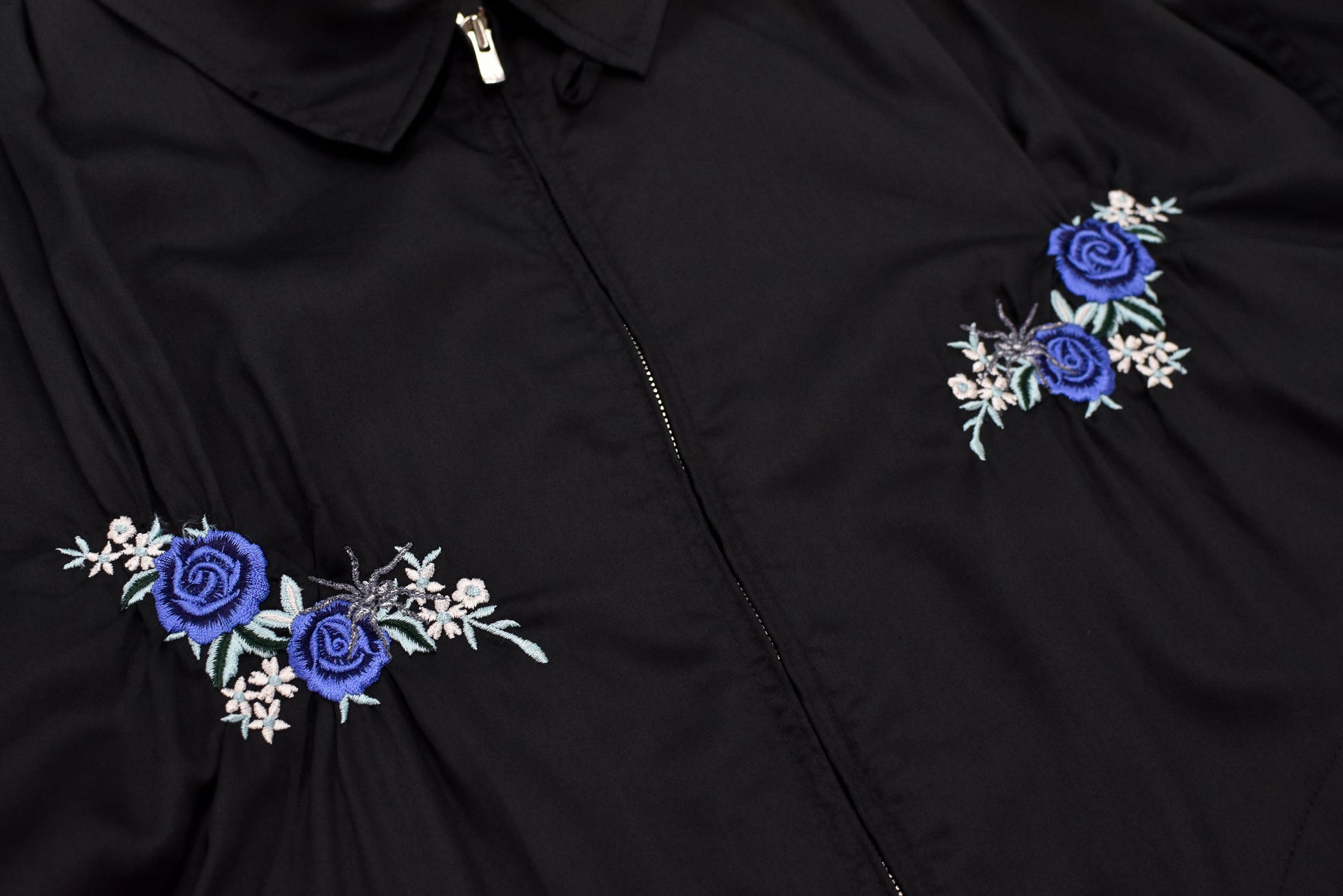 NewRose / Embroidery Wrinklework Blouson - BLACK