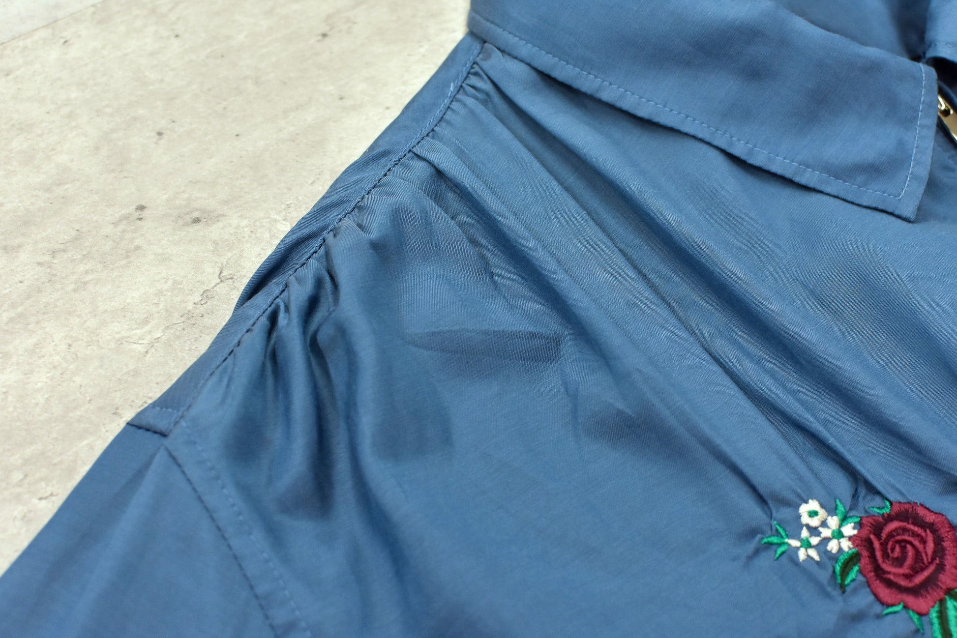 NewRose / Embroidery Wrinklework Blouson - BLUE