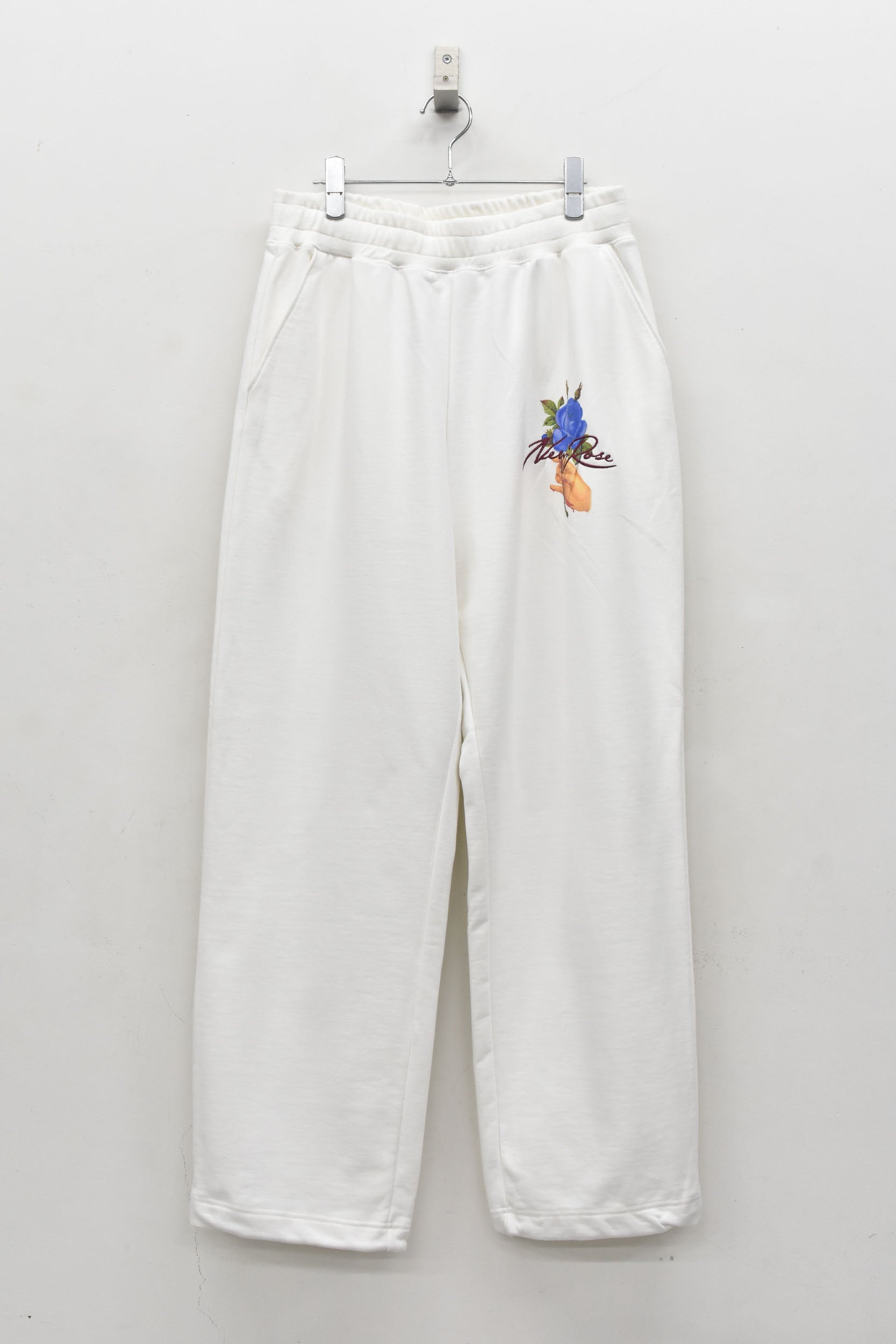 NewRose / Embroidery Wrinklework Sweatpants - WHITE