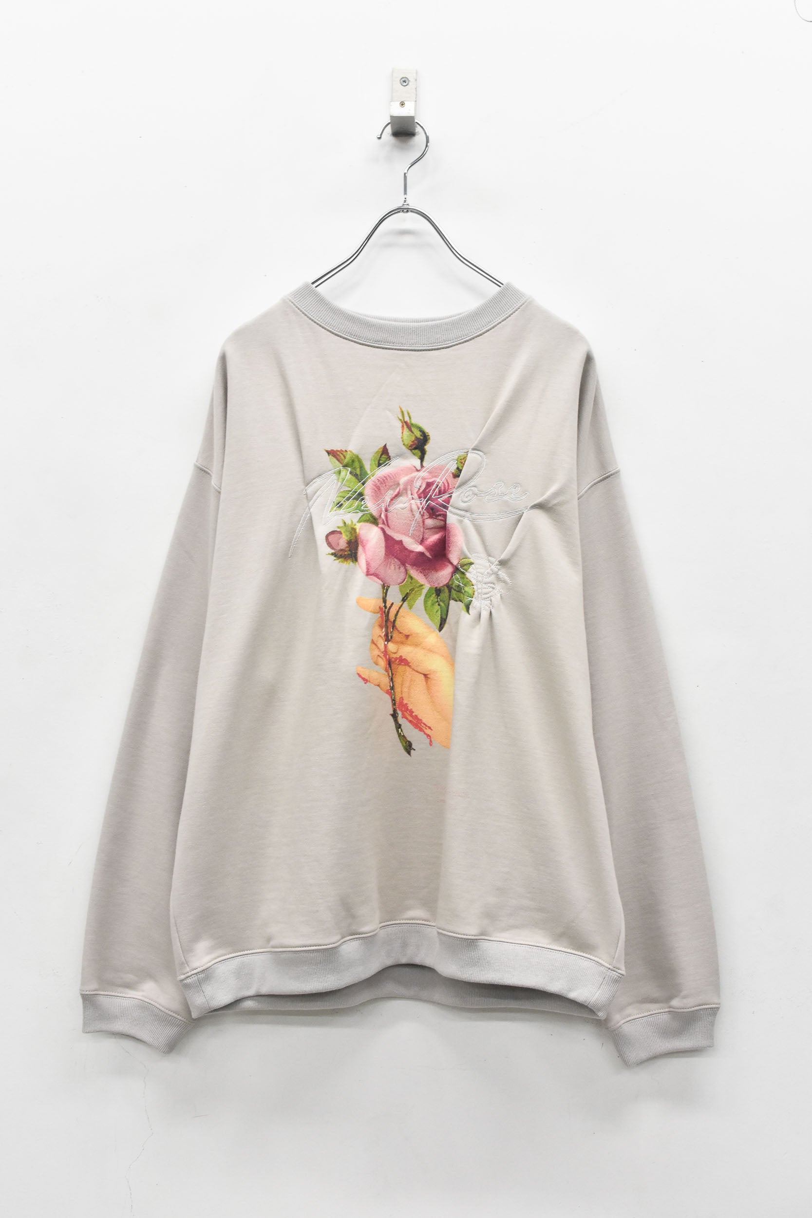 NewRose / Embroidery Wrinklework Sweatshirt - GRAY