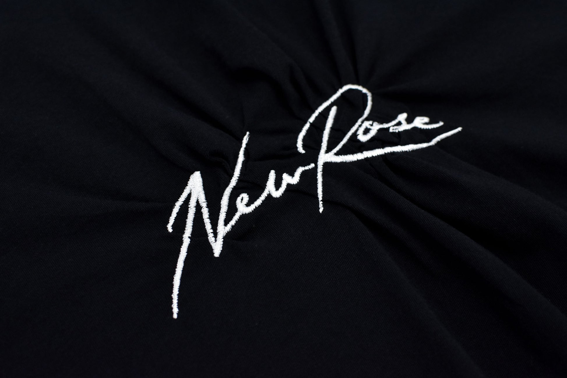NewRose / Embroidery Wrinklework T-shirt -BLACK