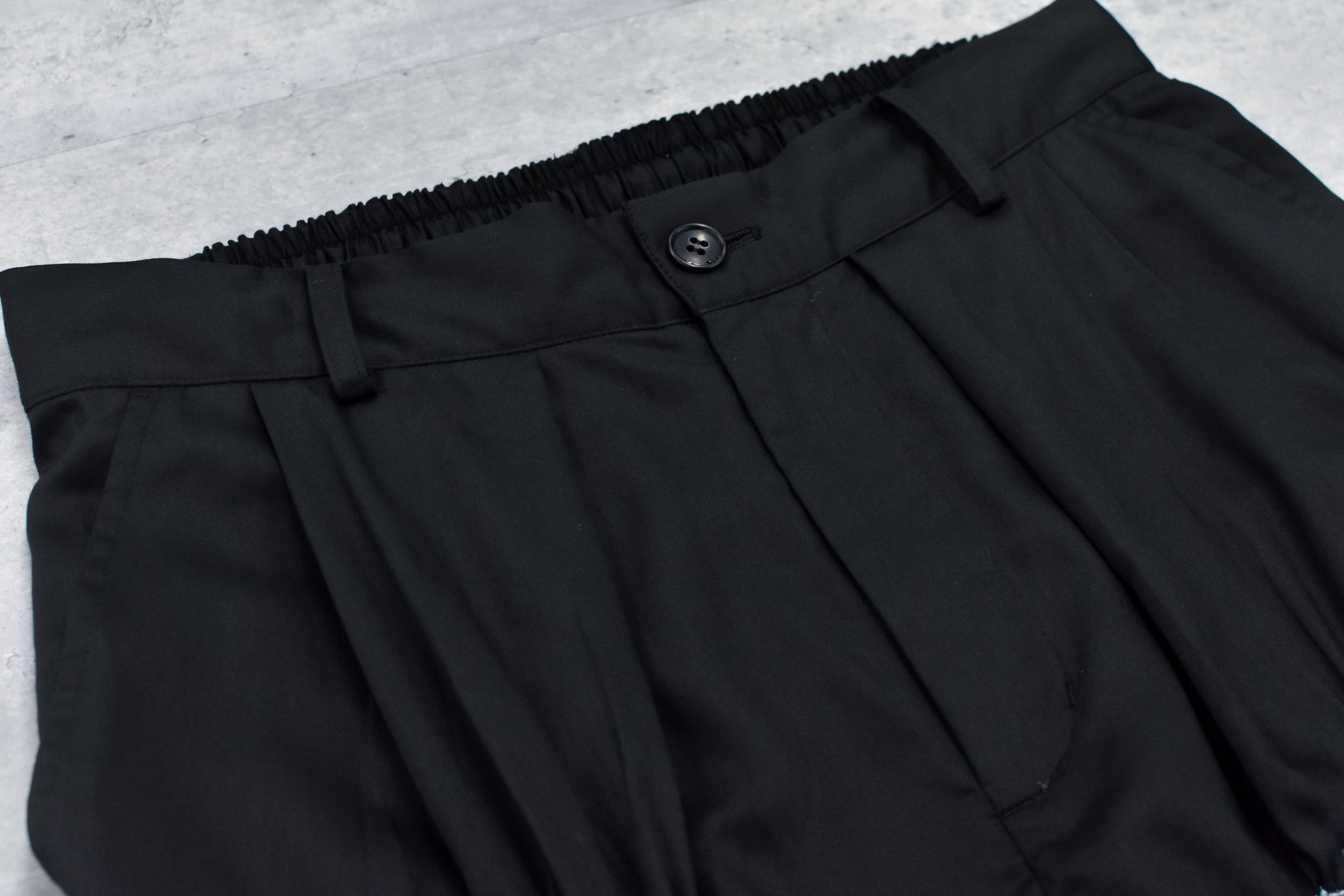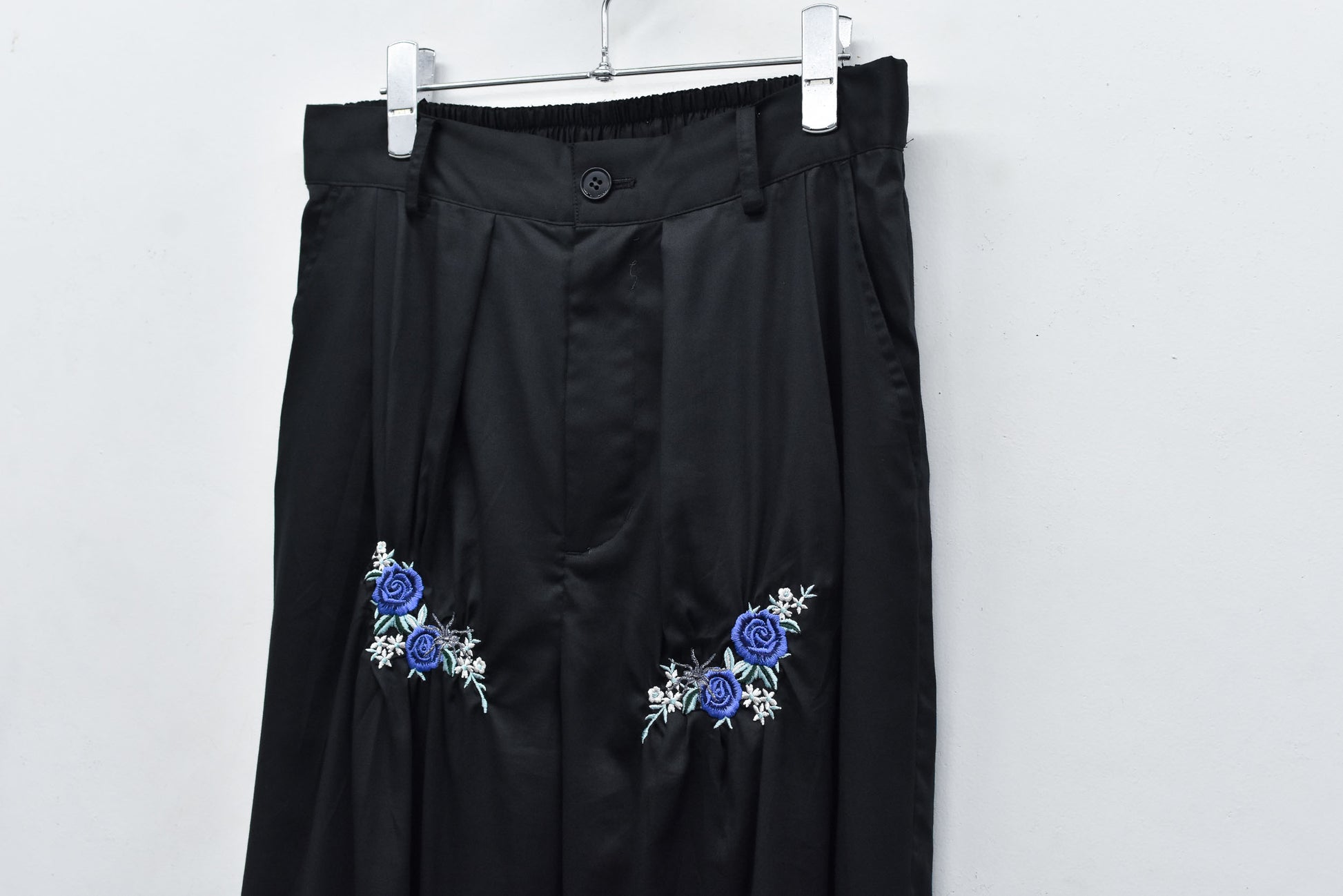 NewRose / Embroidery Wrinklework Tuck Pants - BLACK