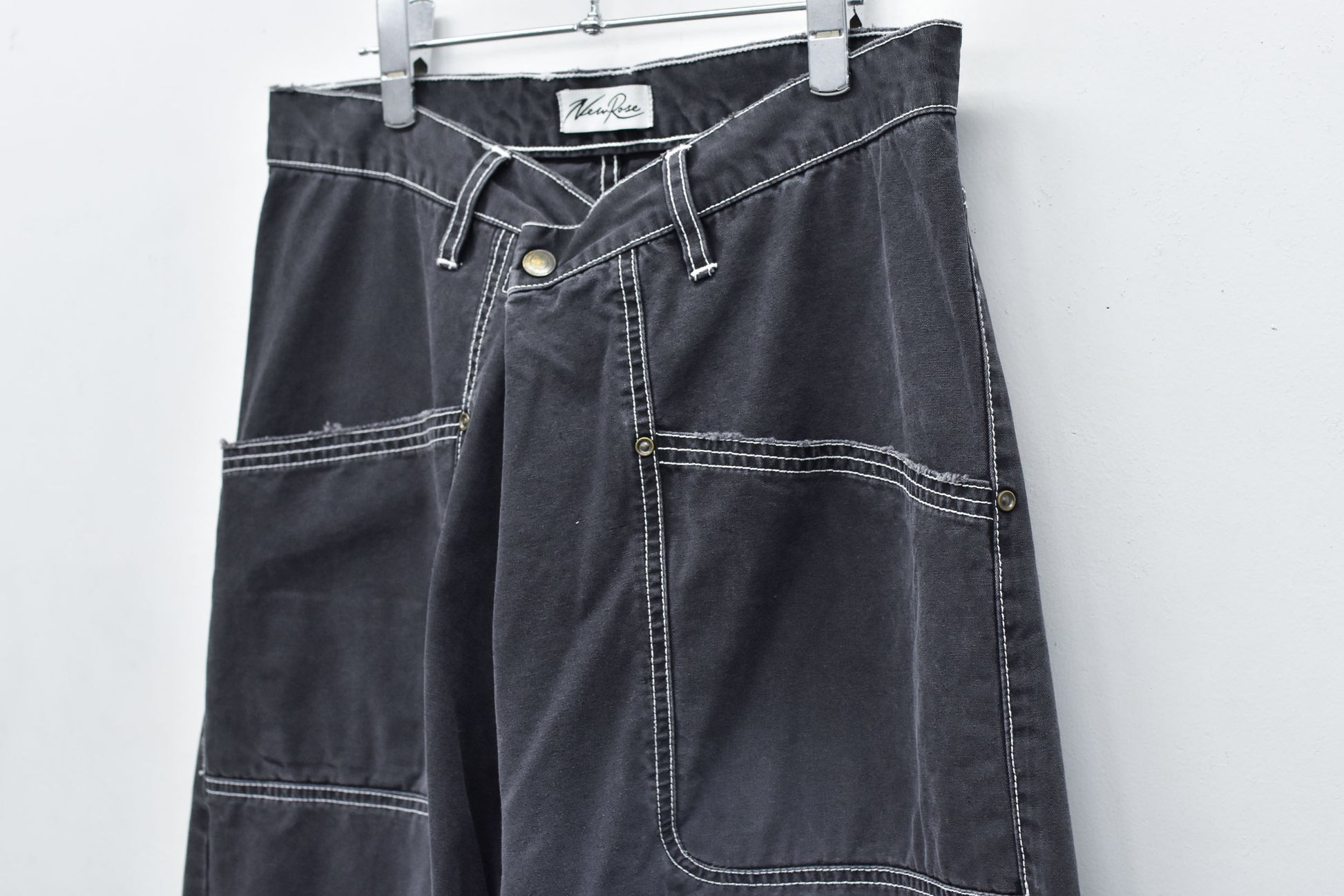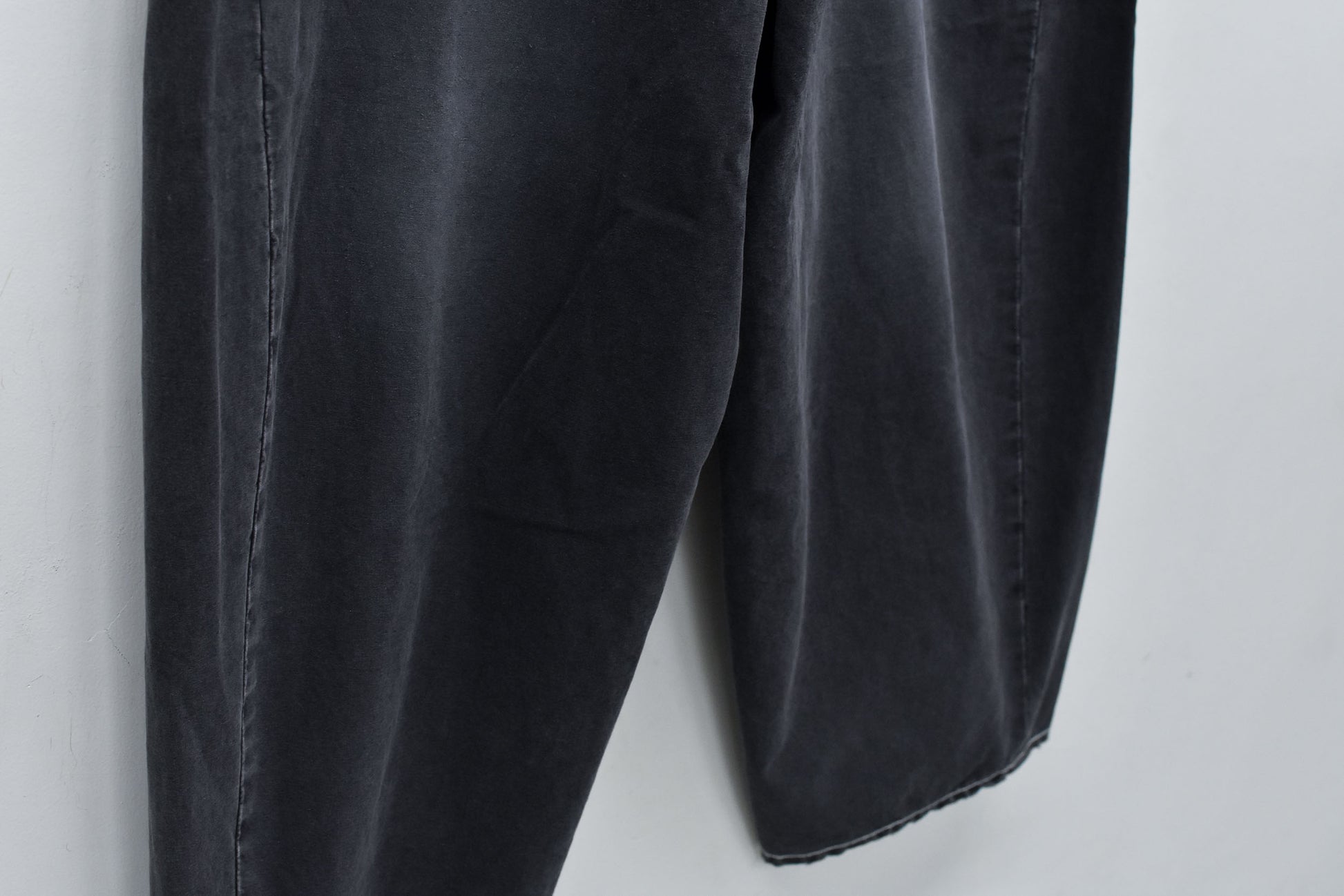 硫化染したミリタリーキャンバス地を使用した、バギーパンツ。