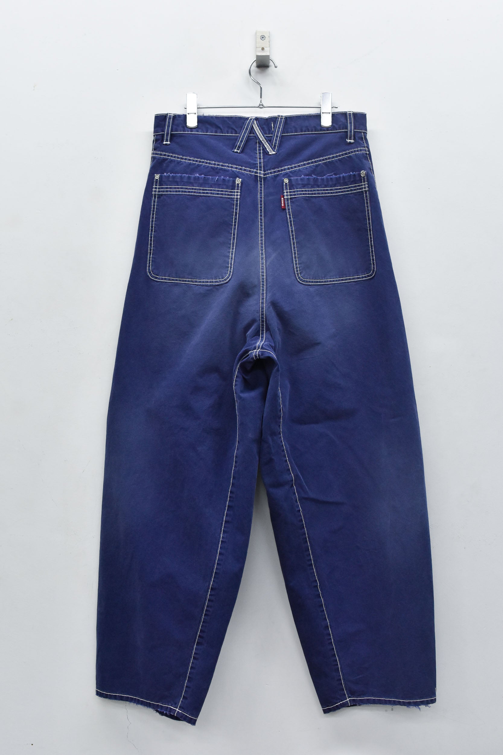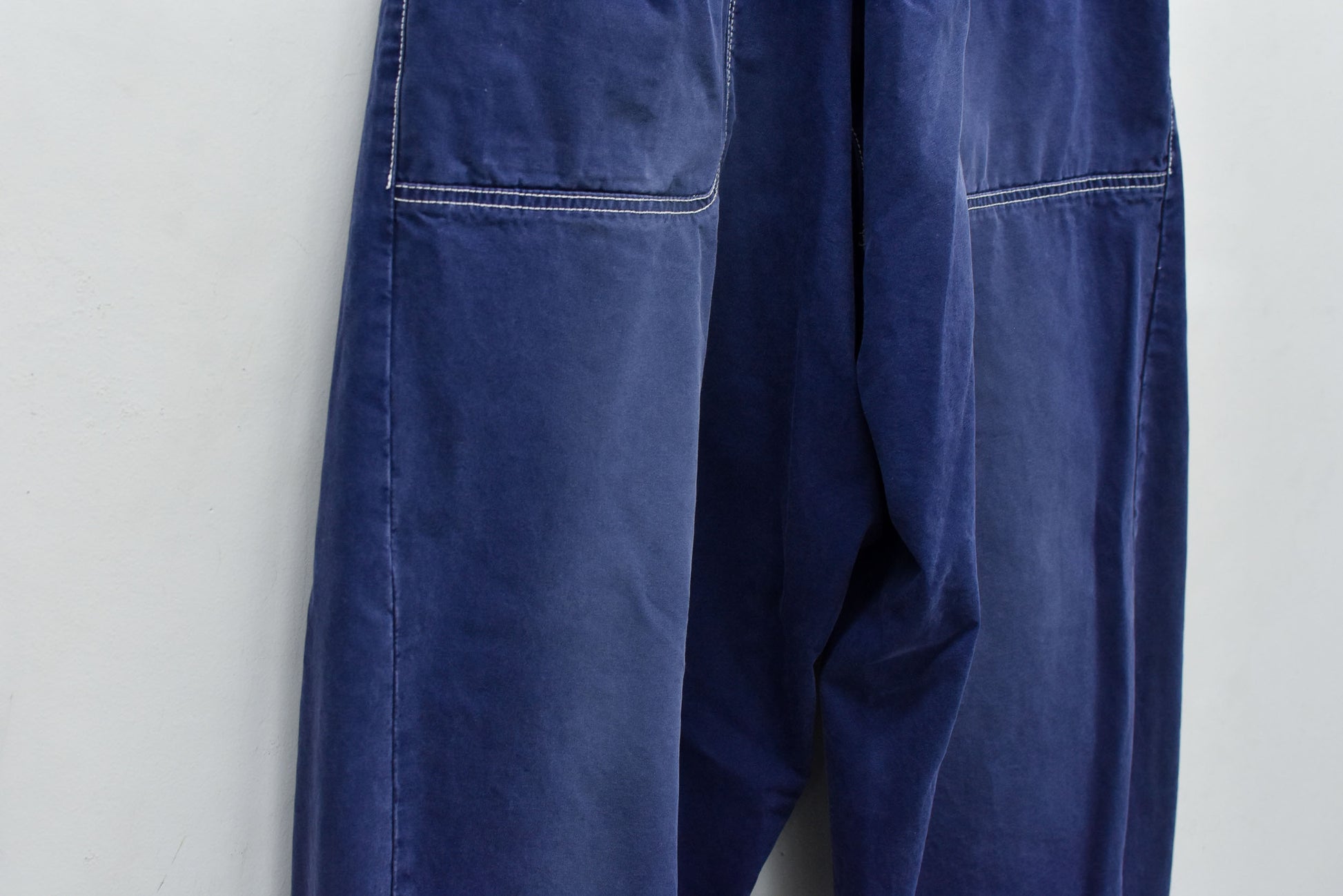 硫化染したミリタリーキャンバス地を使用した、バギーパンツ。