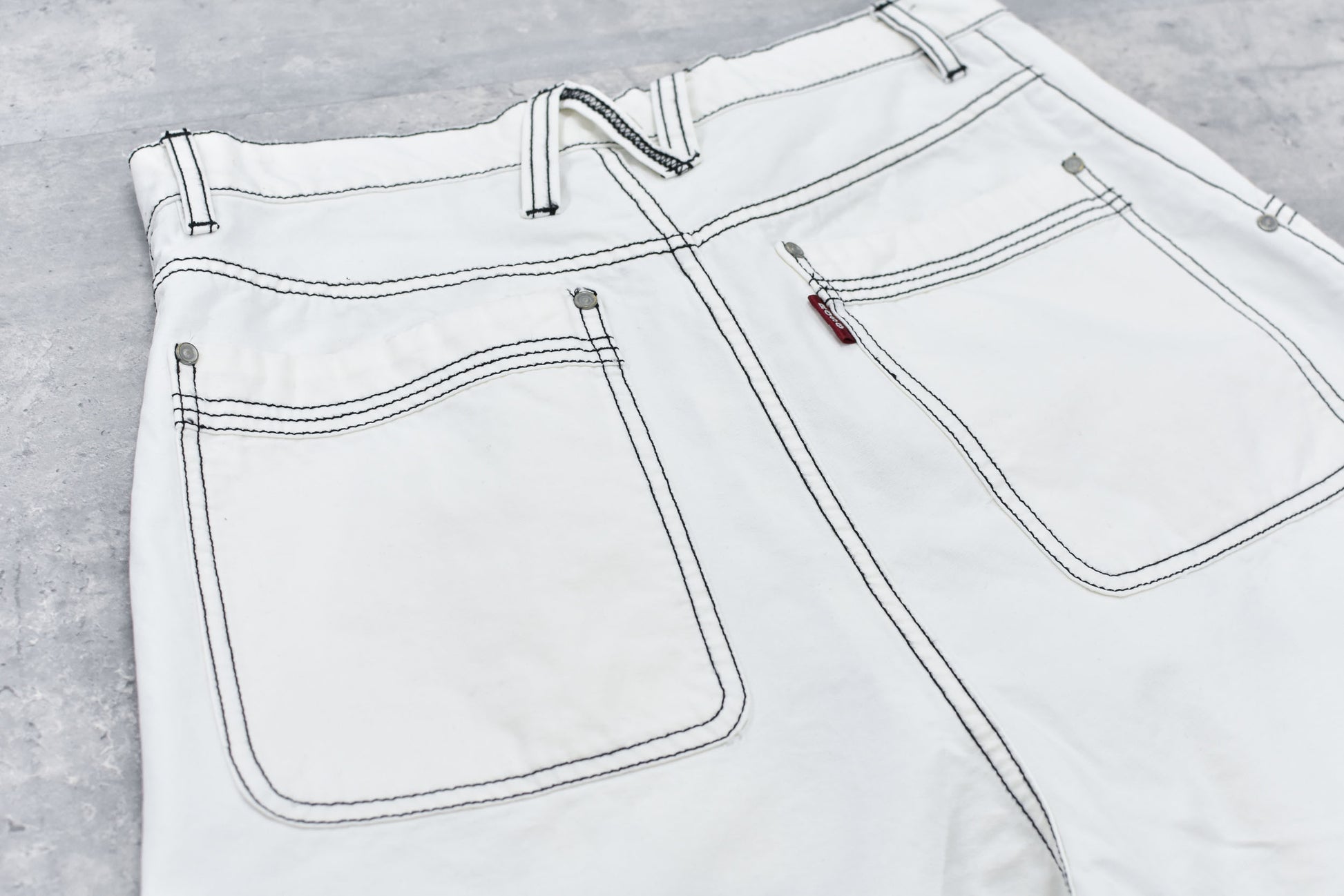 硫化染したミリタリーキャンバス地を使用した、バギーパンツ。