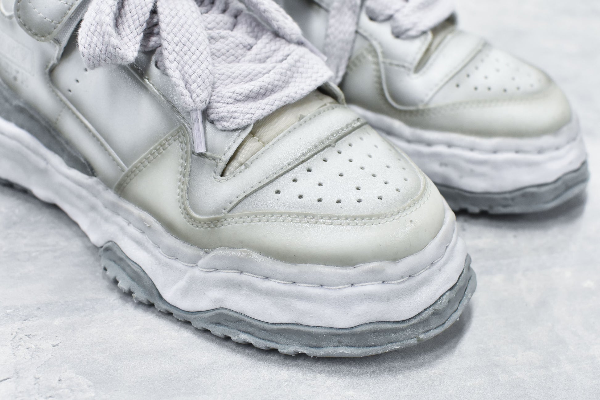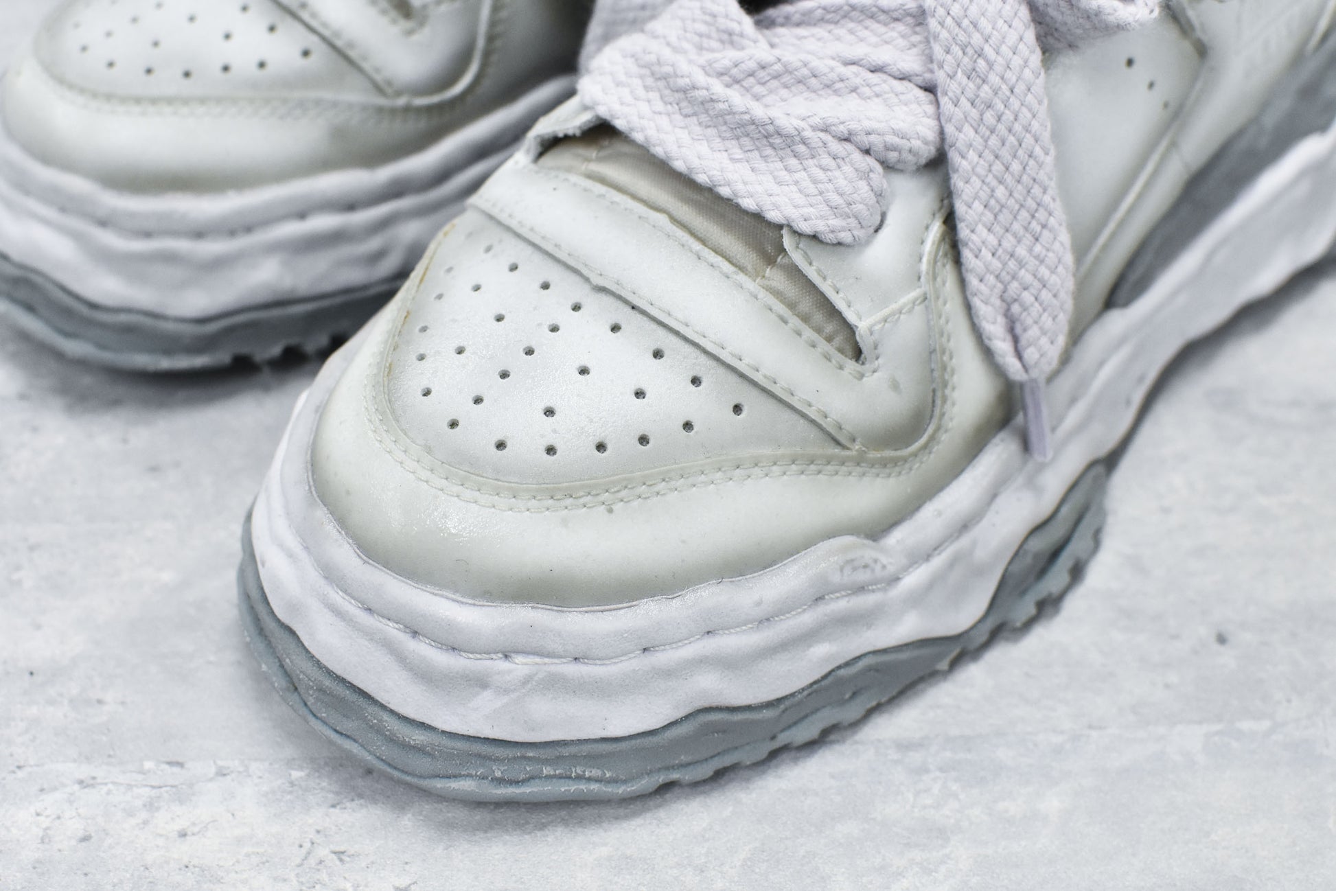 上から塗料を吹き付けしていますので、履いているうちに塗料の剥がれがありますが