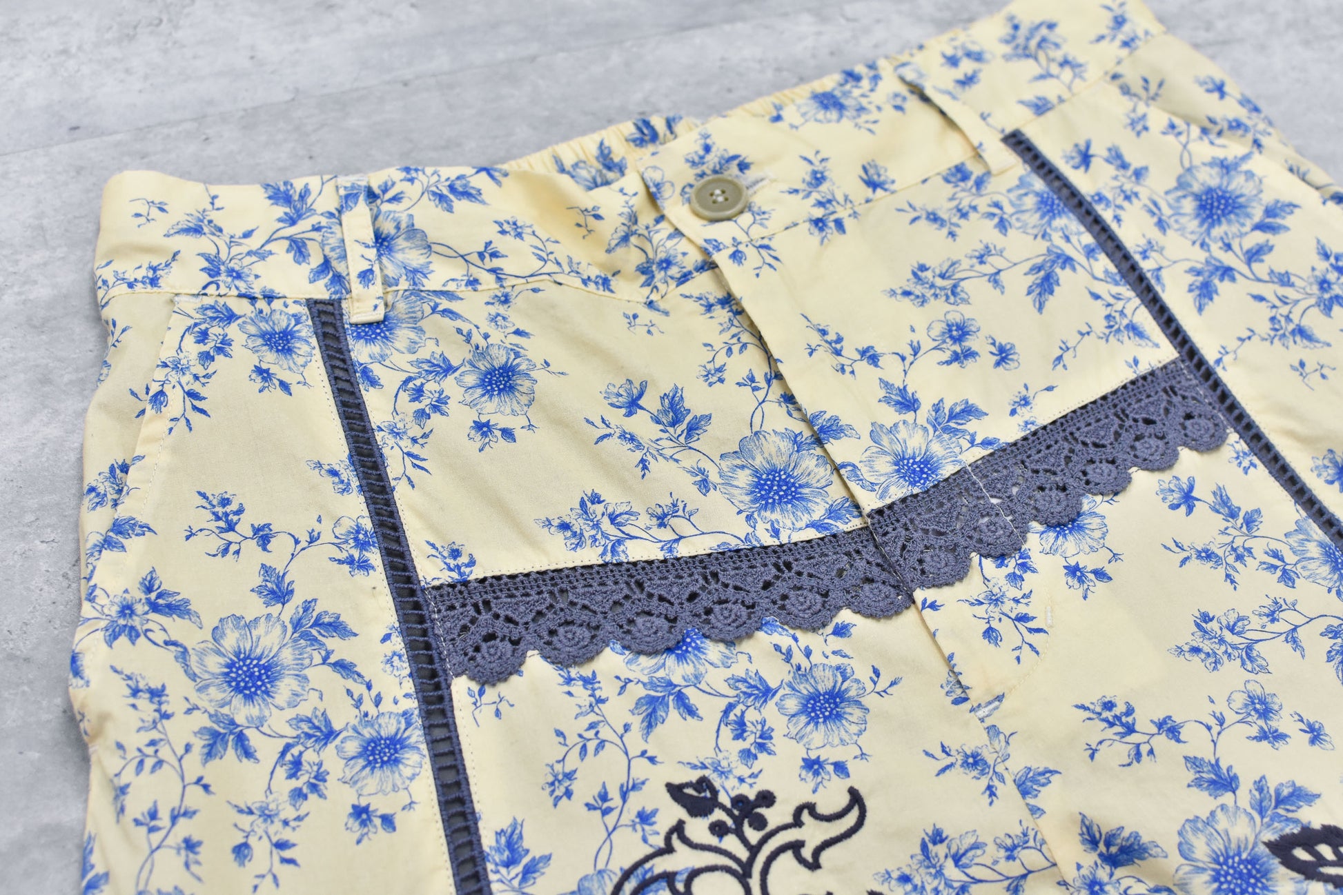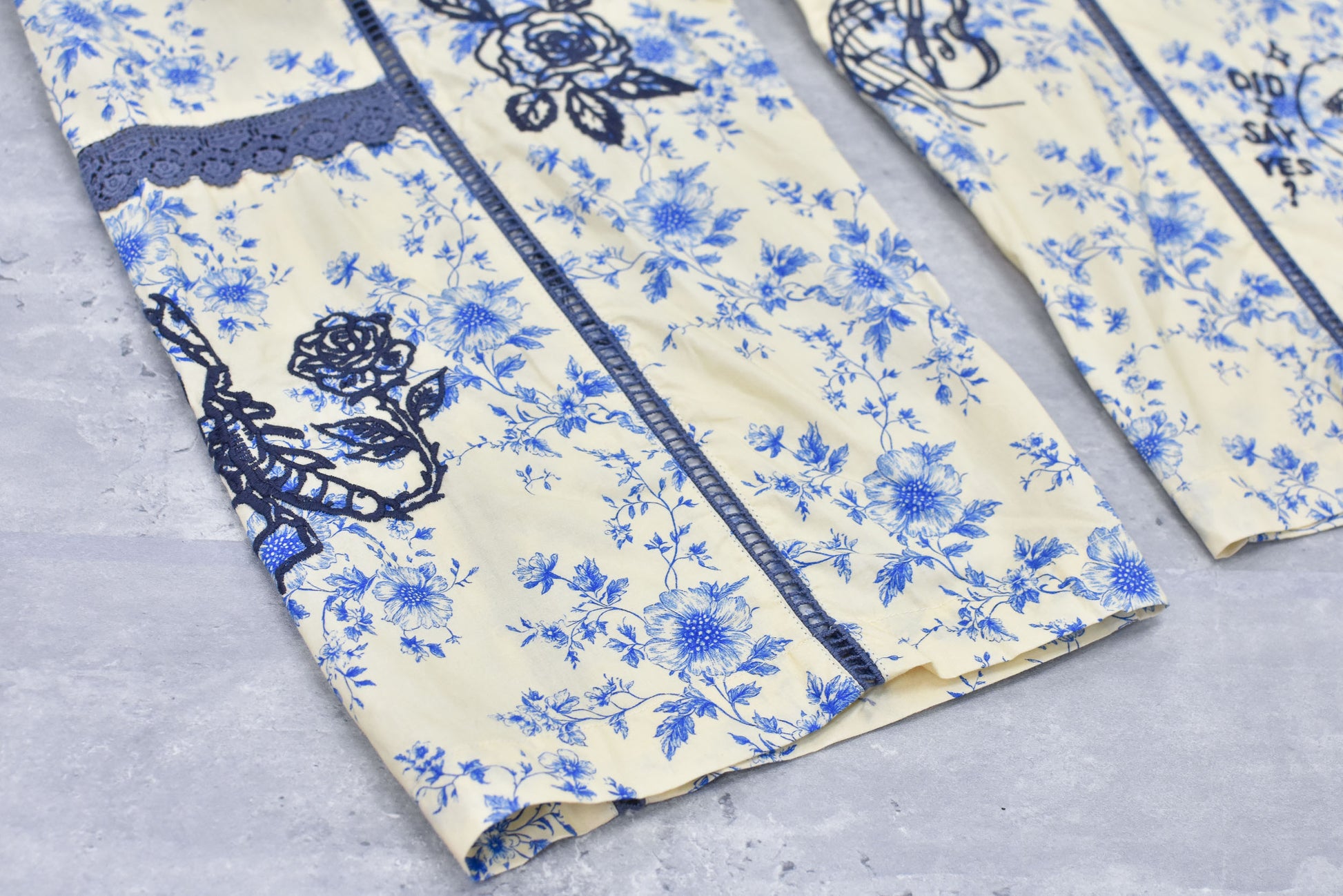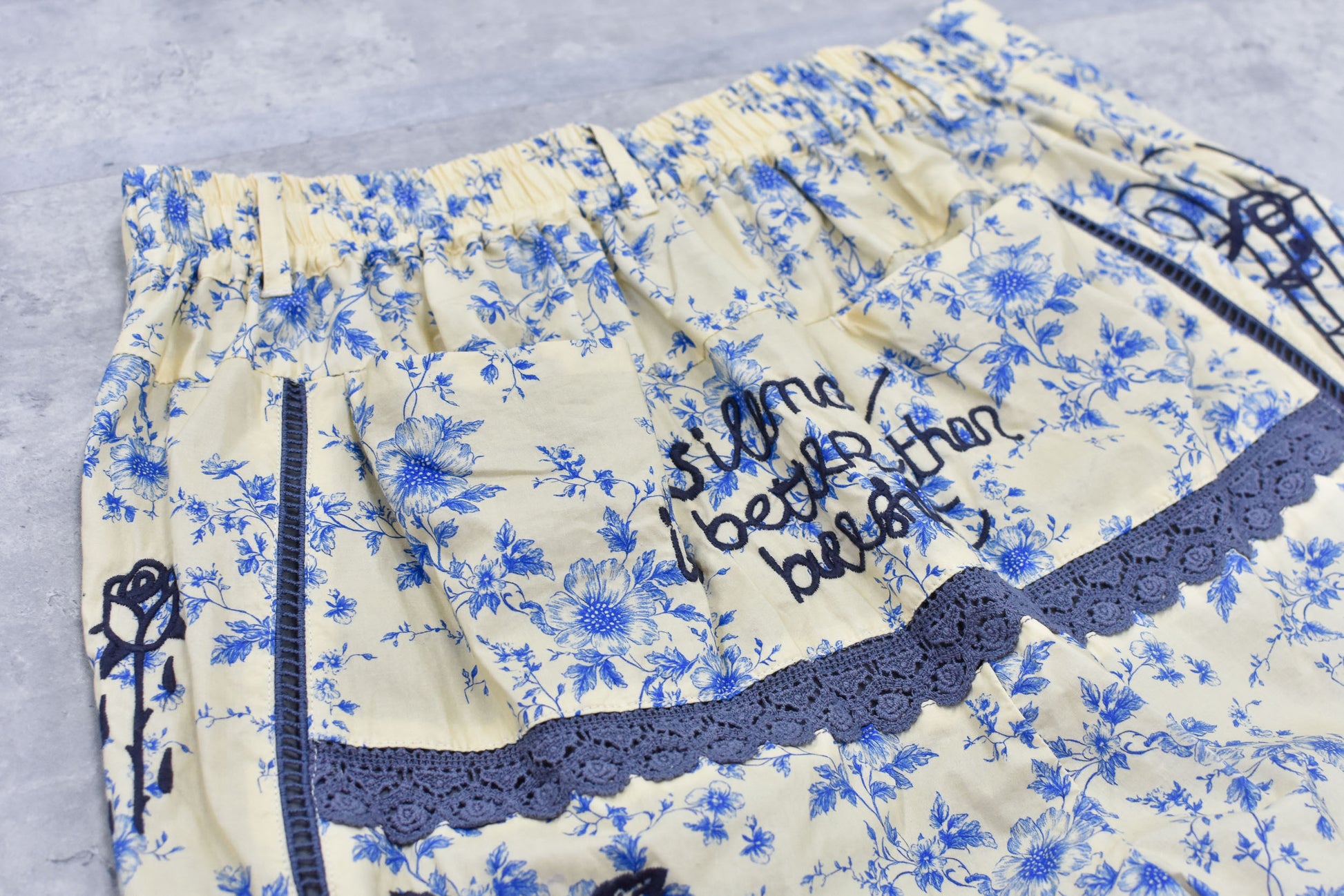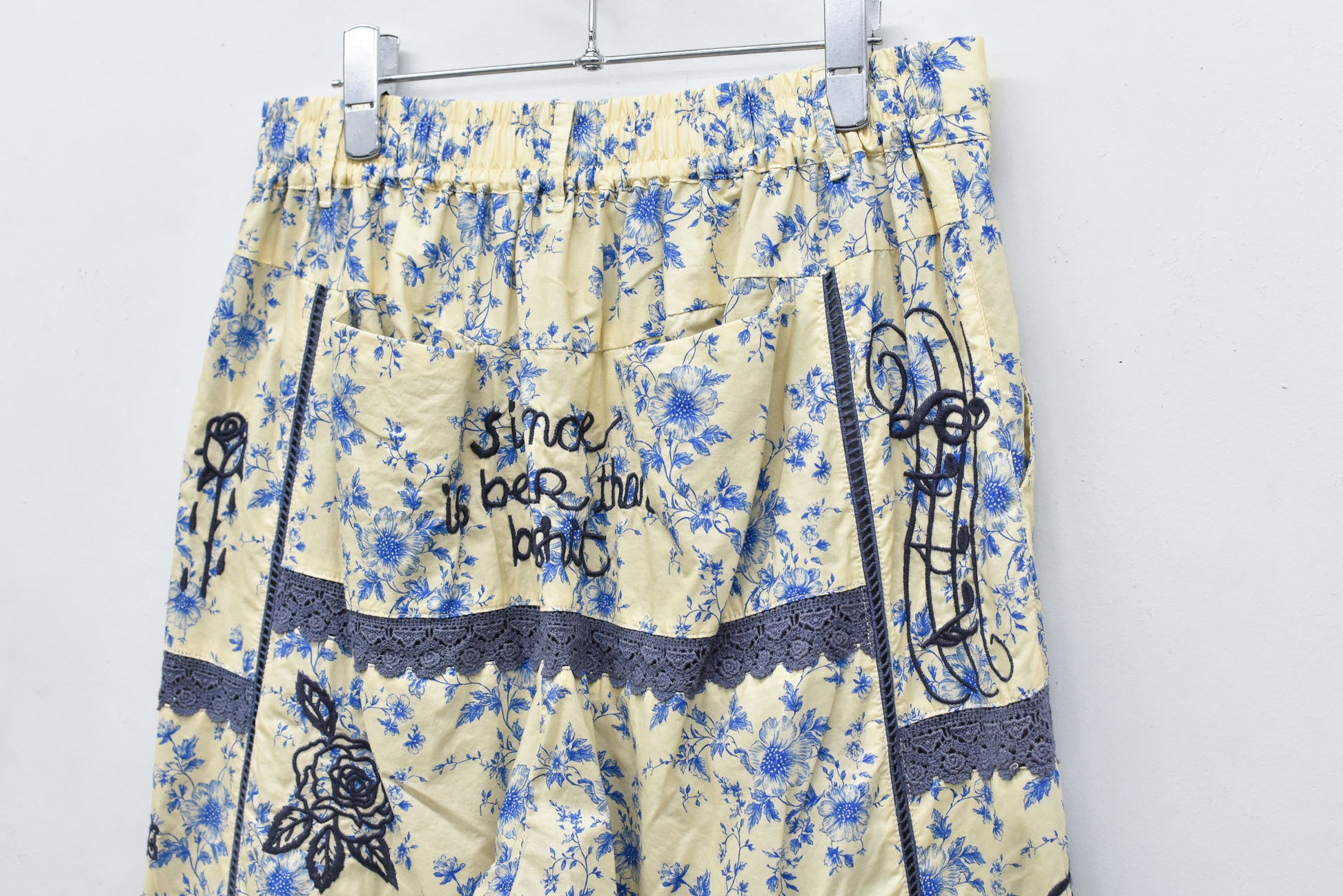 NewRose / Ladder Race×Embroidery Pants - BLUE FLOWER