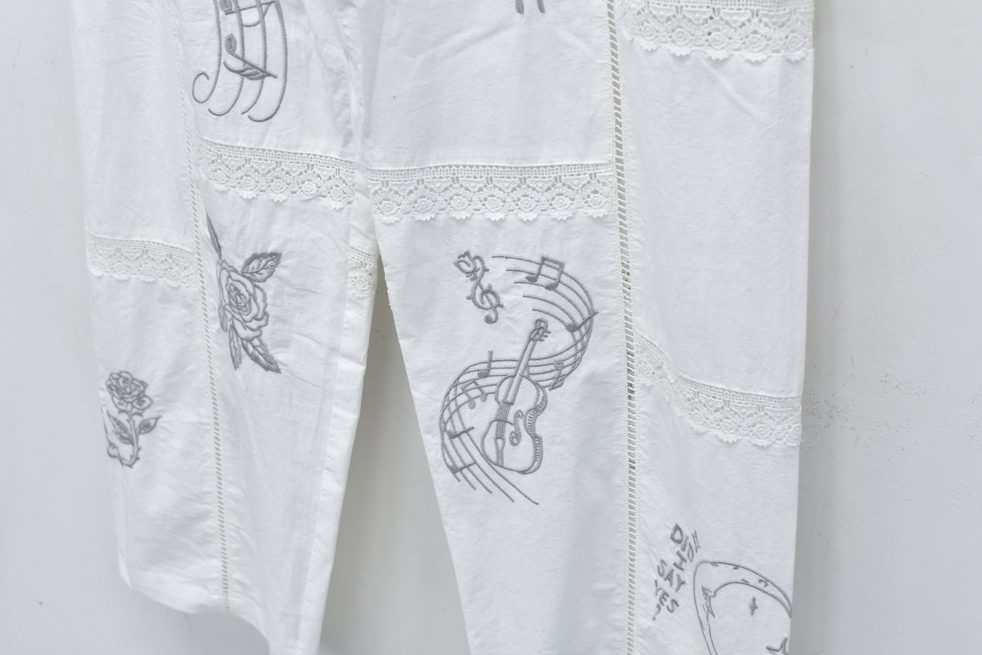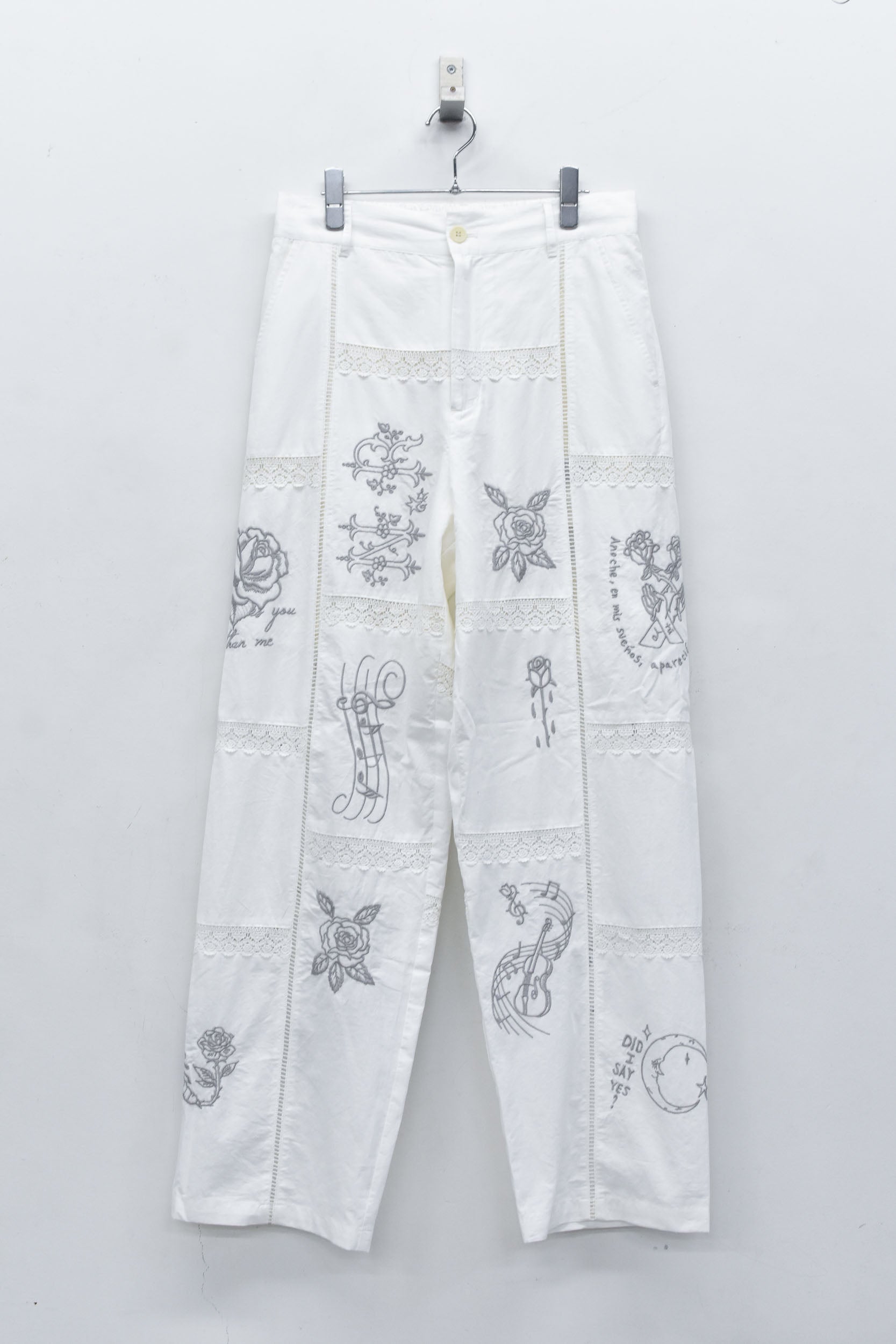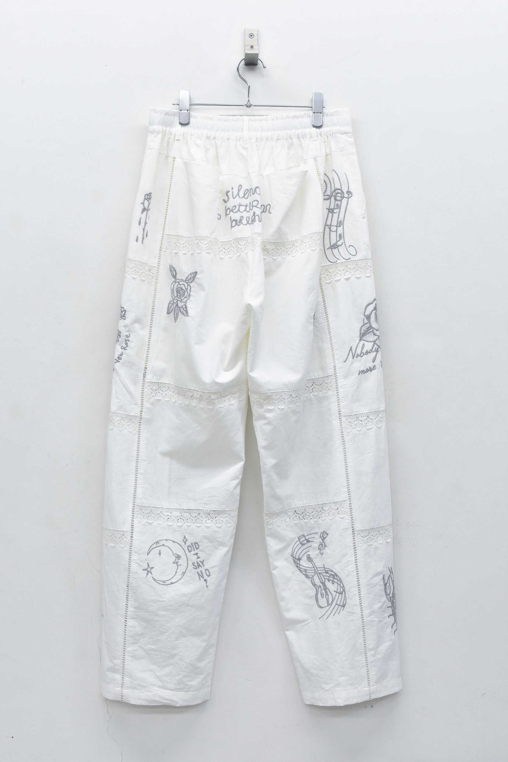 NewRose / Ladder Race×Embroidery Pants - WHITE