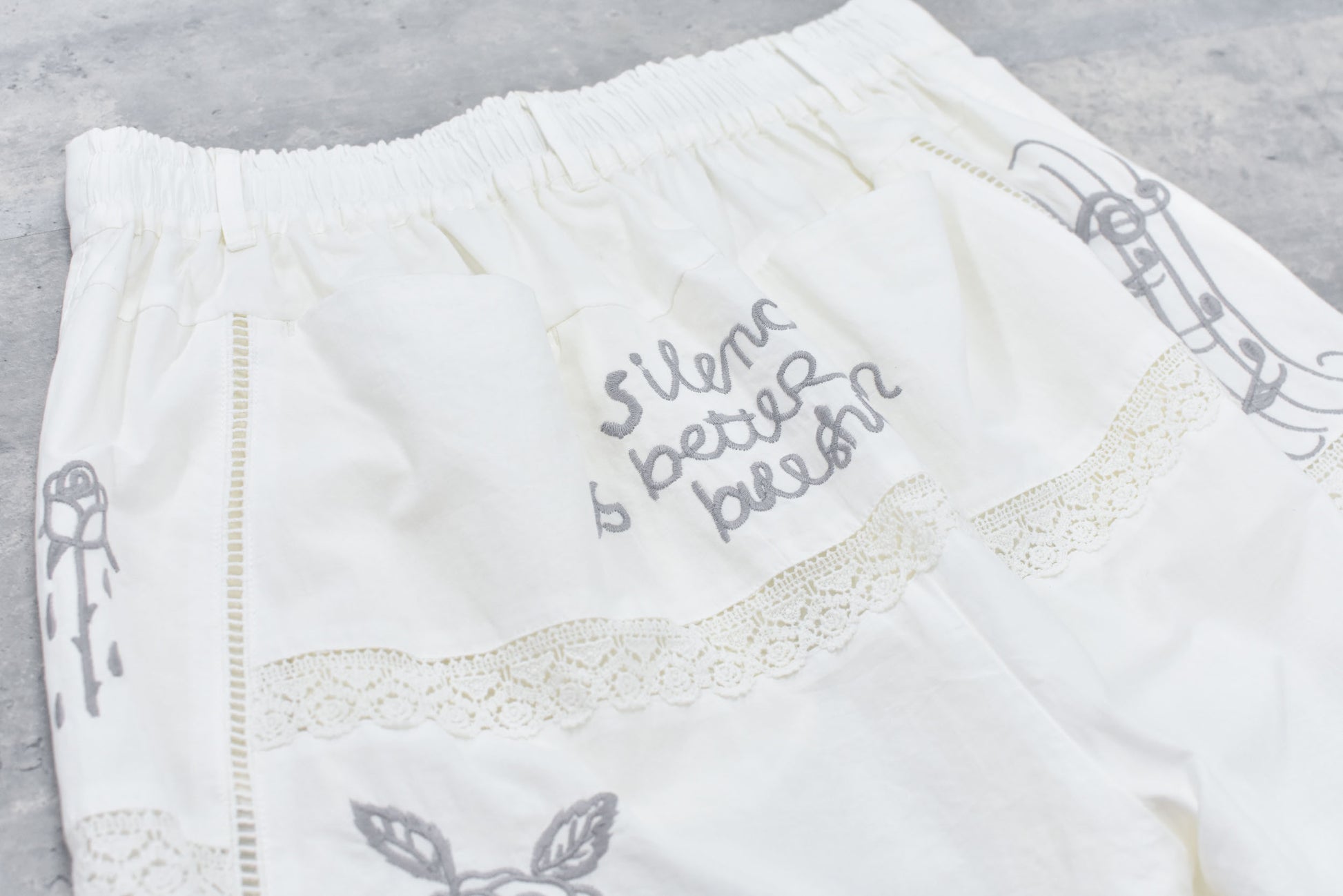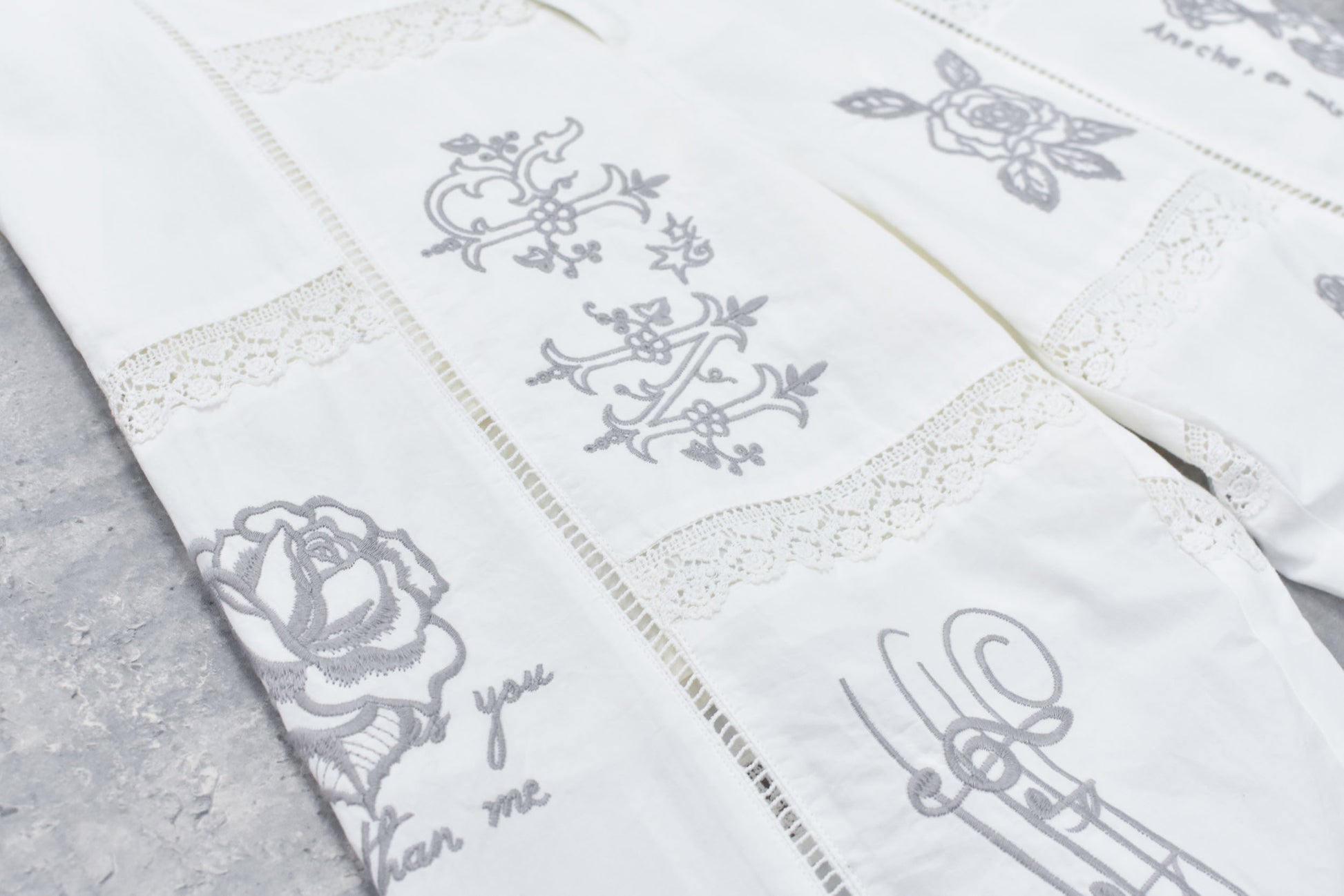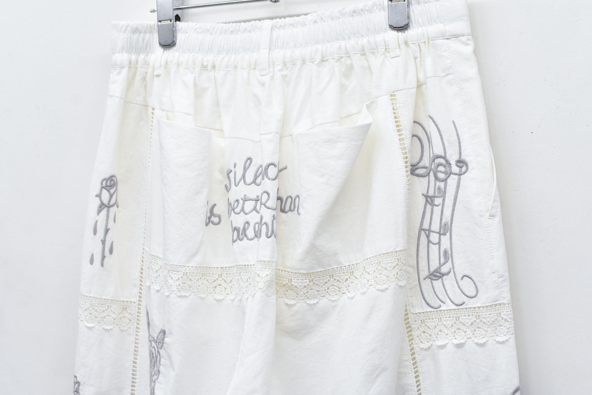 NewRose / Ladder Race×Embroidery Pants - WHITE