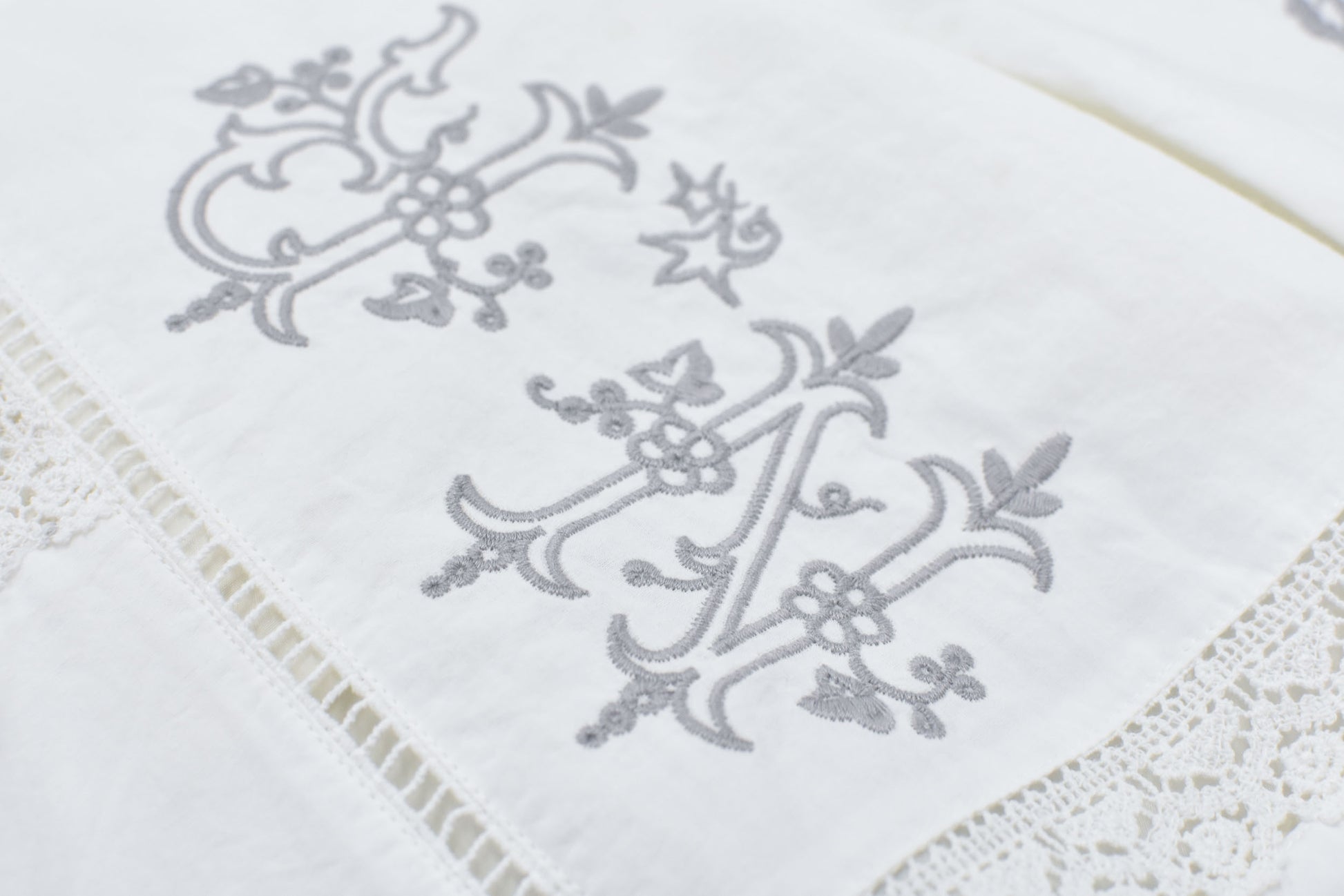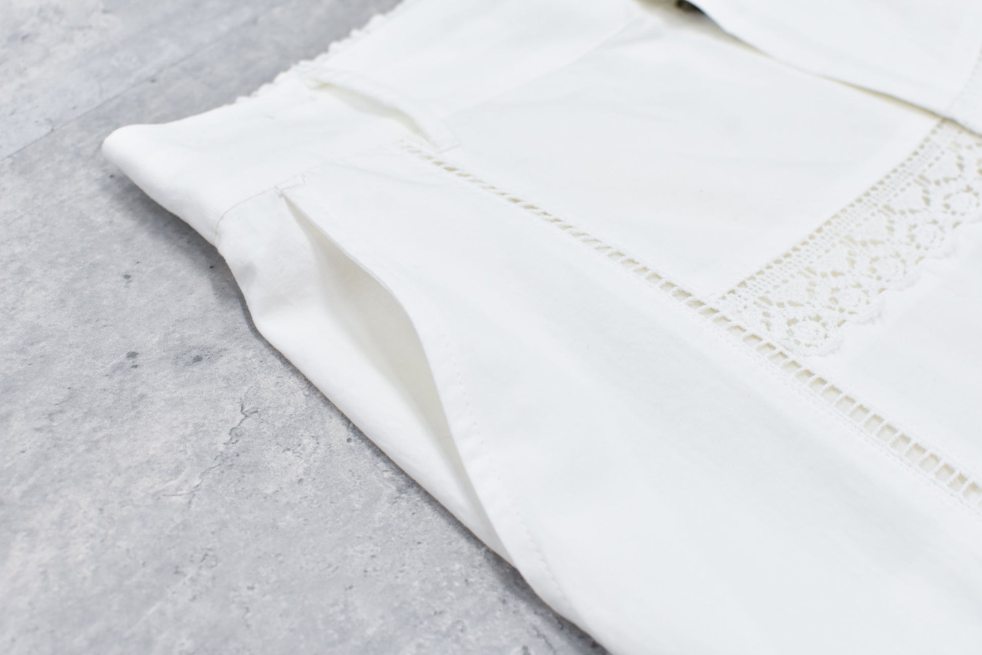 10種類以上の柄を前後左右にレース始末と刺繍を施したアートピースのようなワイドパンツ。