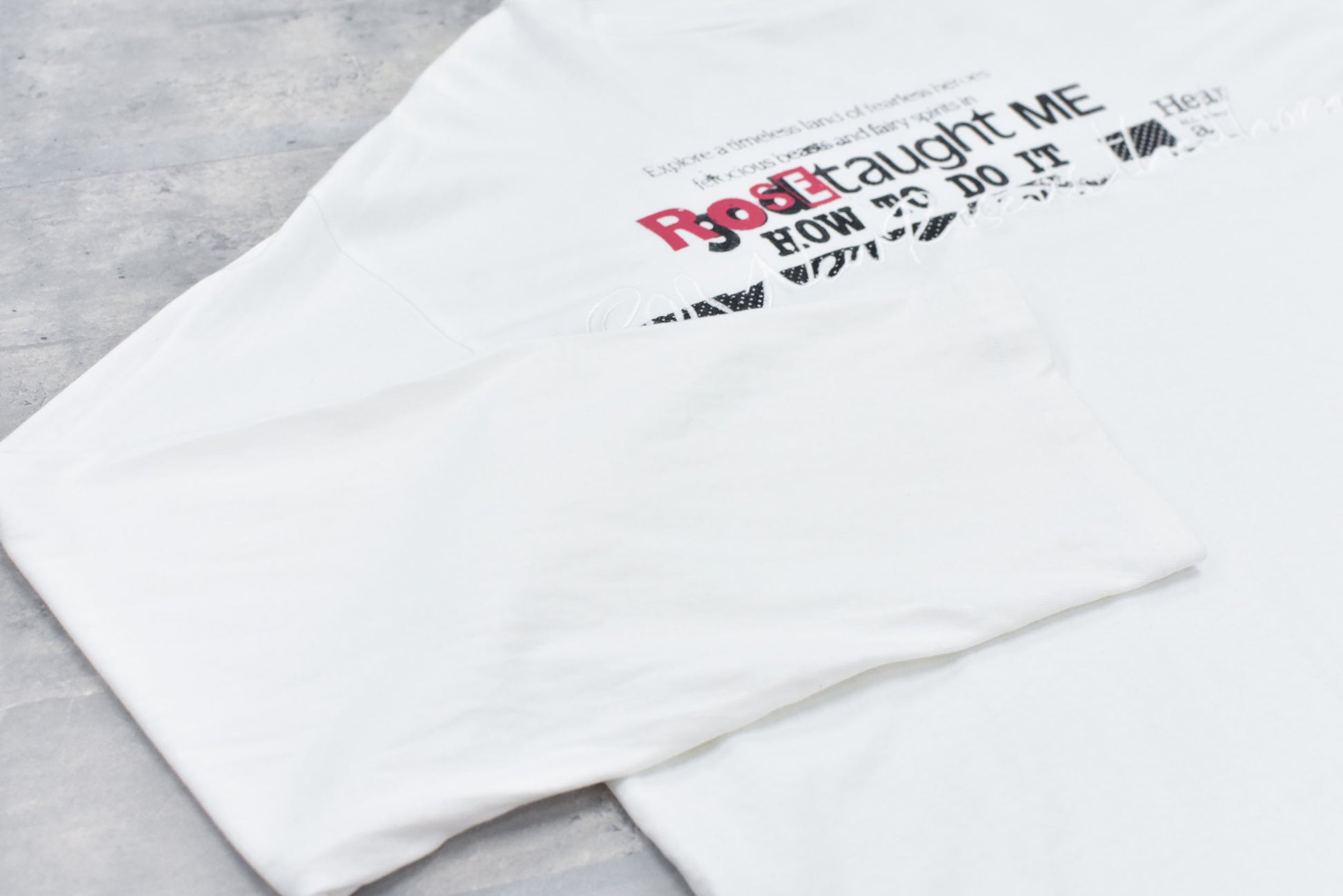 身頃上部のプリントしたパーツと下部の無地のパーツを、
